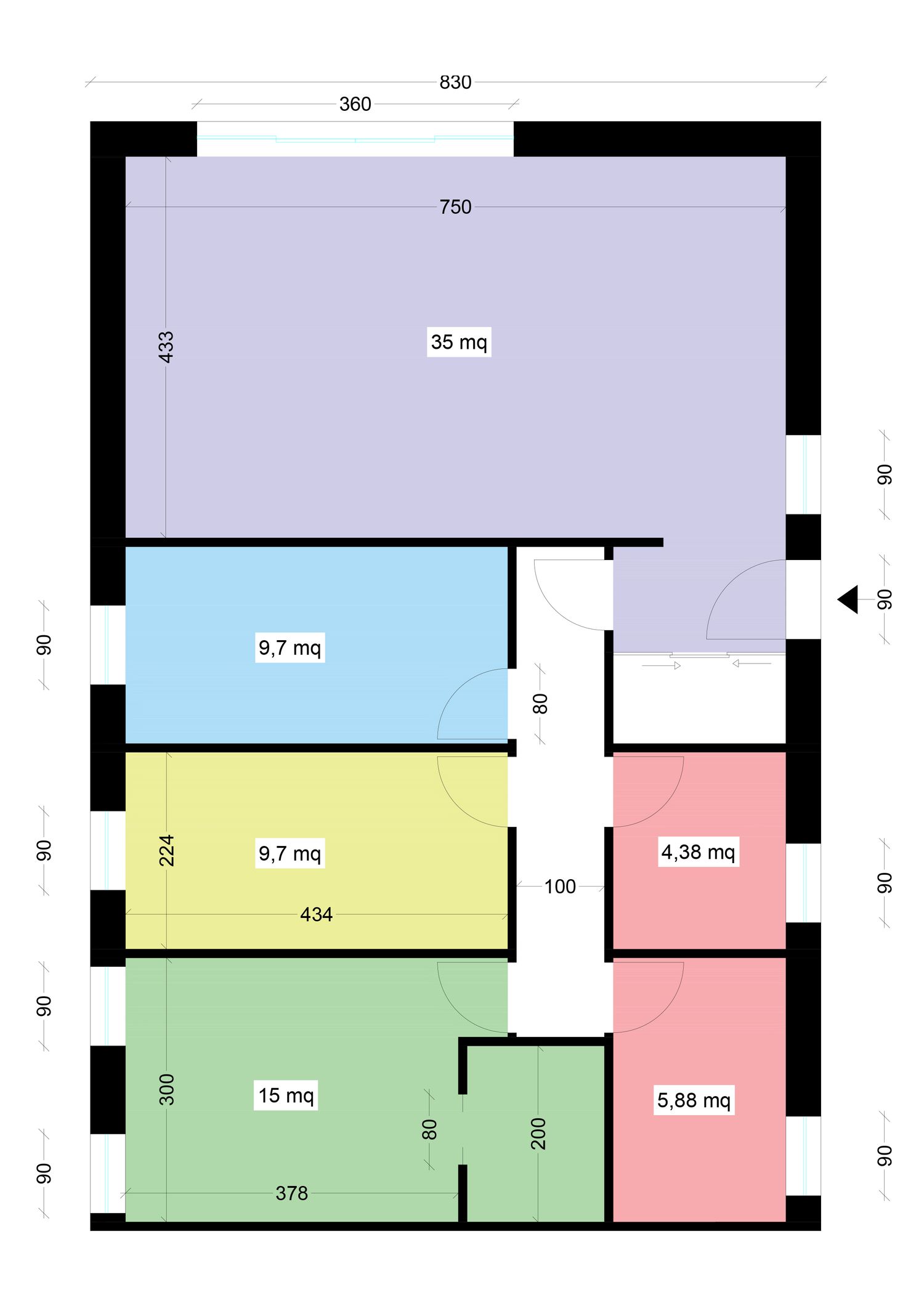 La sua cucina vincolava parecchio per dare un affaccio totale visivo verso la piscina, gli spazi di passaggio devono essere comodi e rispettati. Ho preferito quindi che fossero le camere ad averlo, anche per una quiete notturna, mentre la zona giorno l' ha parzialmente. saluti