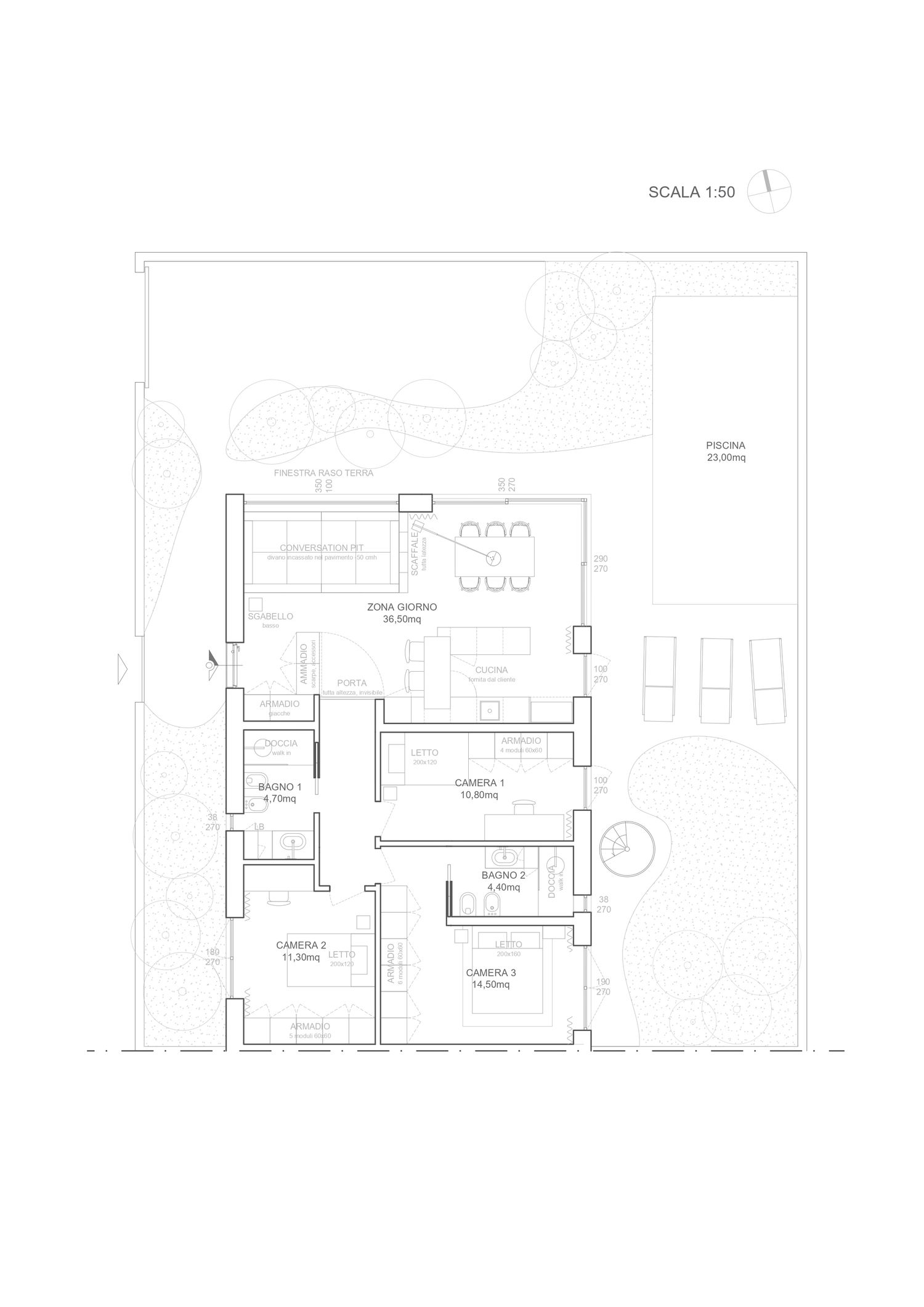 Buongiorno, In allegato trovera´ la planimetria in scala 1:50 del progetto della villa e una relazione illustrativa. Cordiali saluti