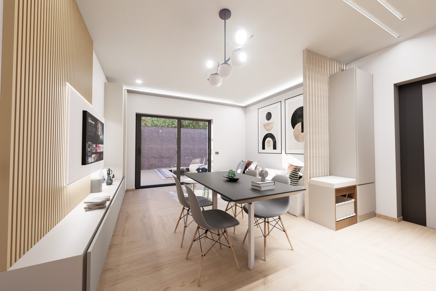 L’accesso si apre su un disimpegno che permette di mantenere ordine e riservatezza, evitando viste dirette sugli ambienti principali.