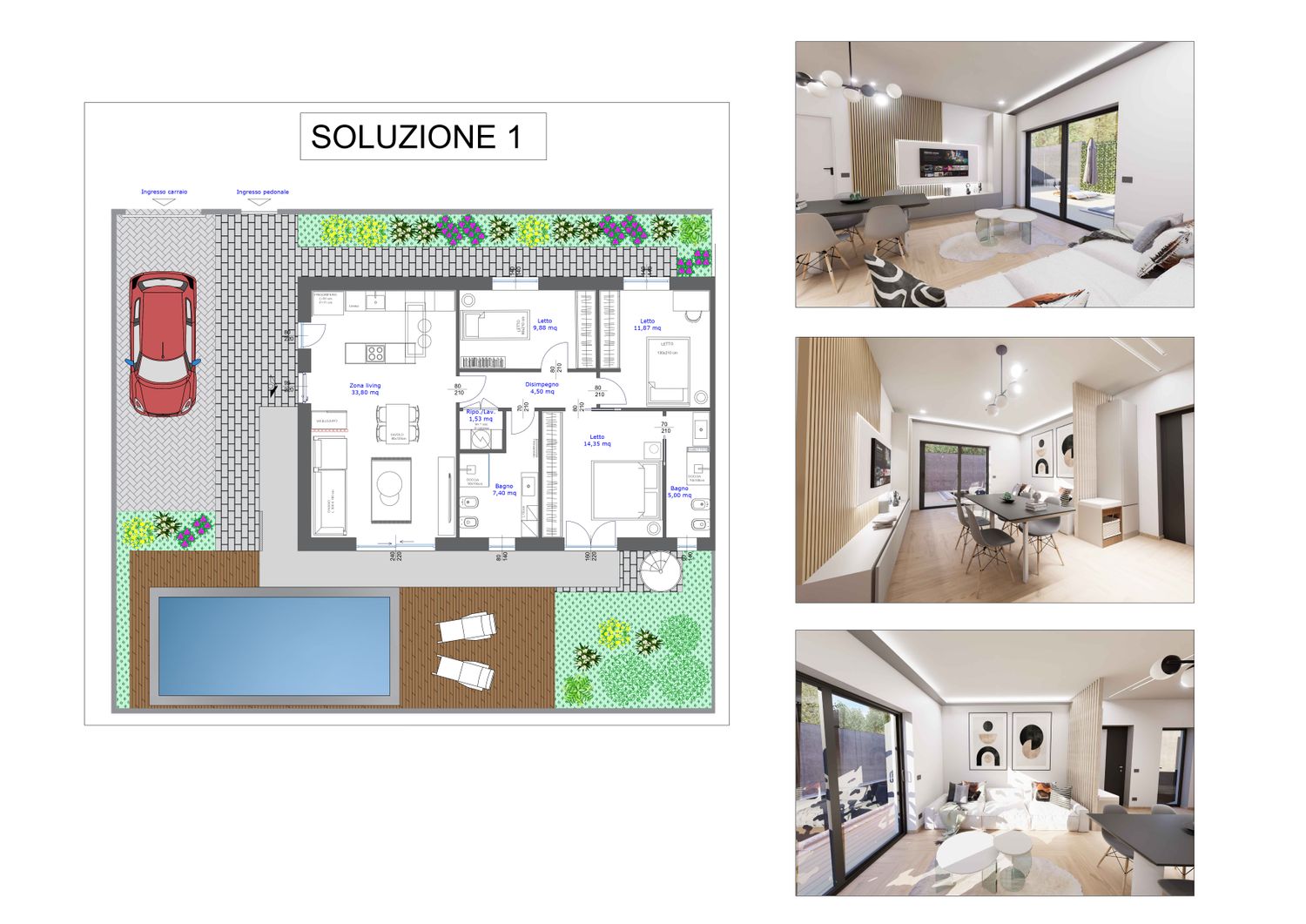 L'abitazione ha accesso pedonale e carraio ben distinti. La porta d’ingresso è posizionata in modo da garantire privacy immediata, evitando affacci diretti sulle zone private e consentendo una distribuzione interna fluida.