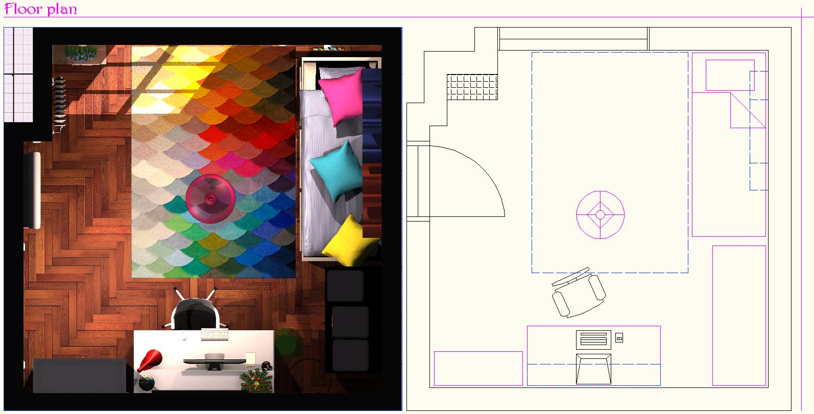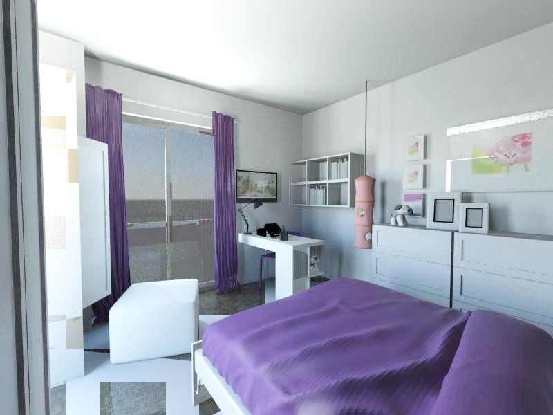 In the room you need to place a large bed, a wardrobe, a desk and a table to hold the new television that we've just bought. We don't want to spend a lot for the furniture, so please try to propose not too expensive furniture. Also keep in mind that behind the window there's a small balcony.