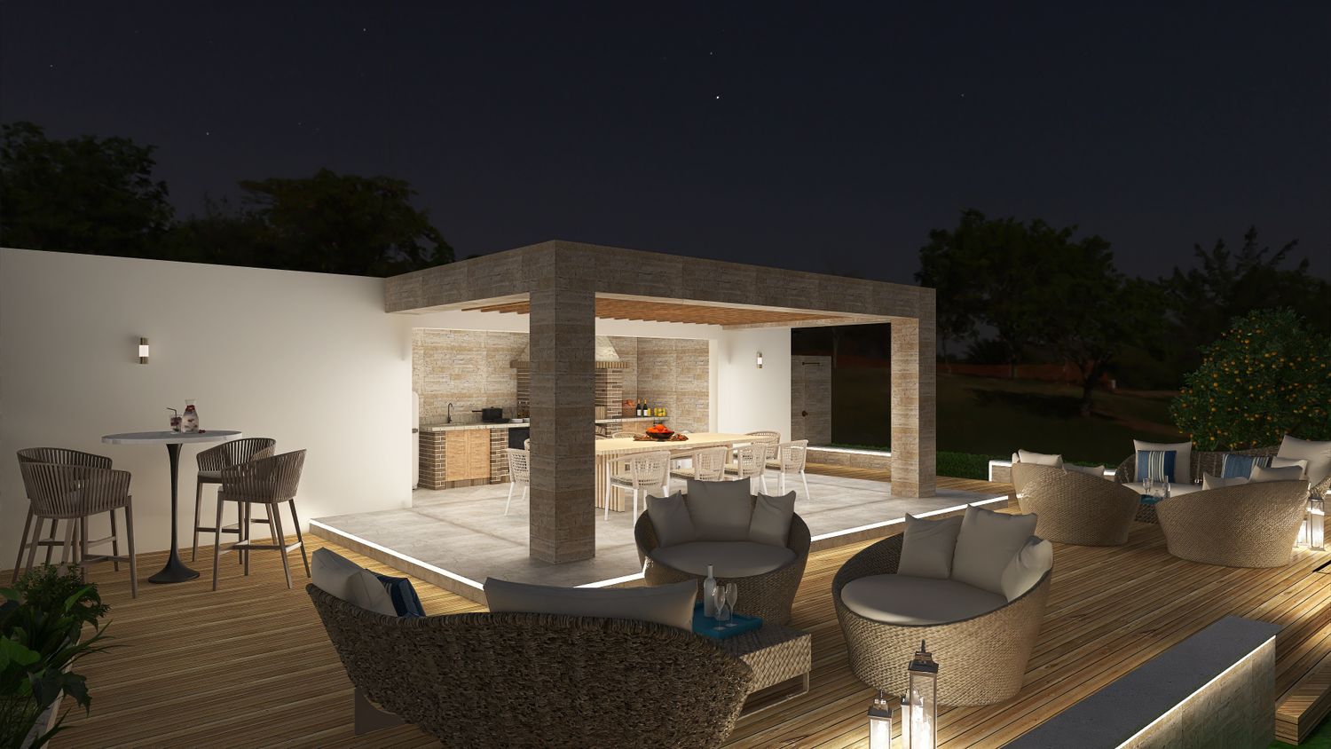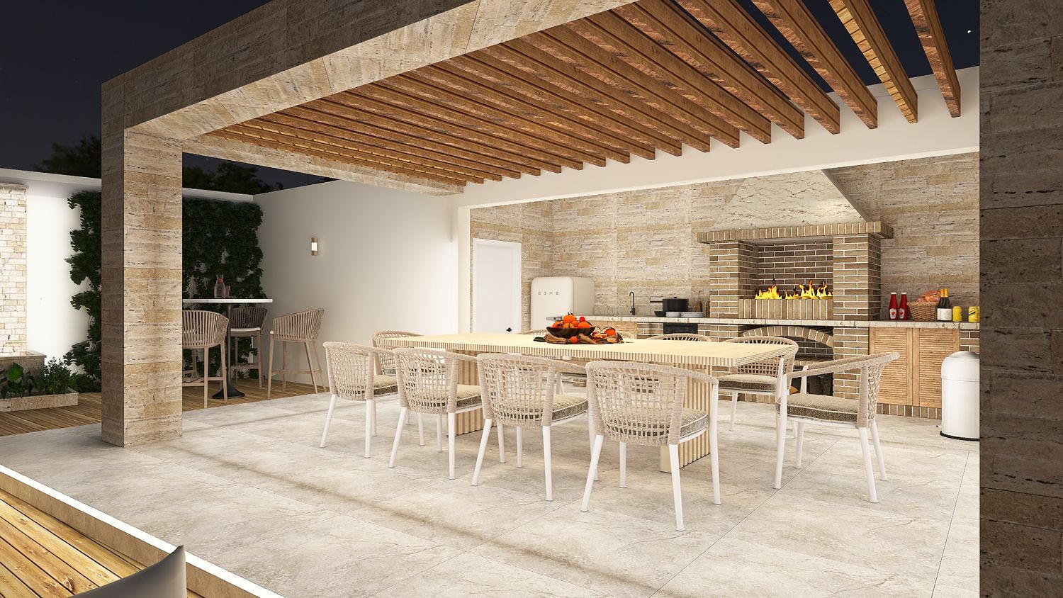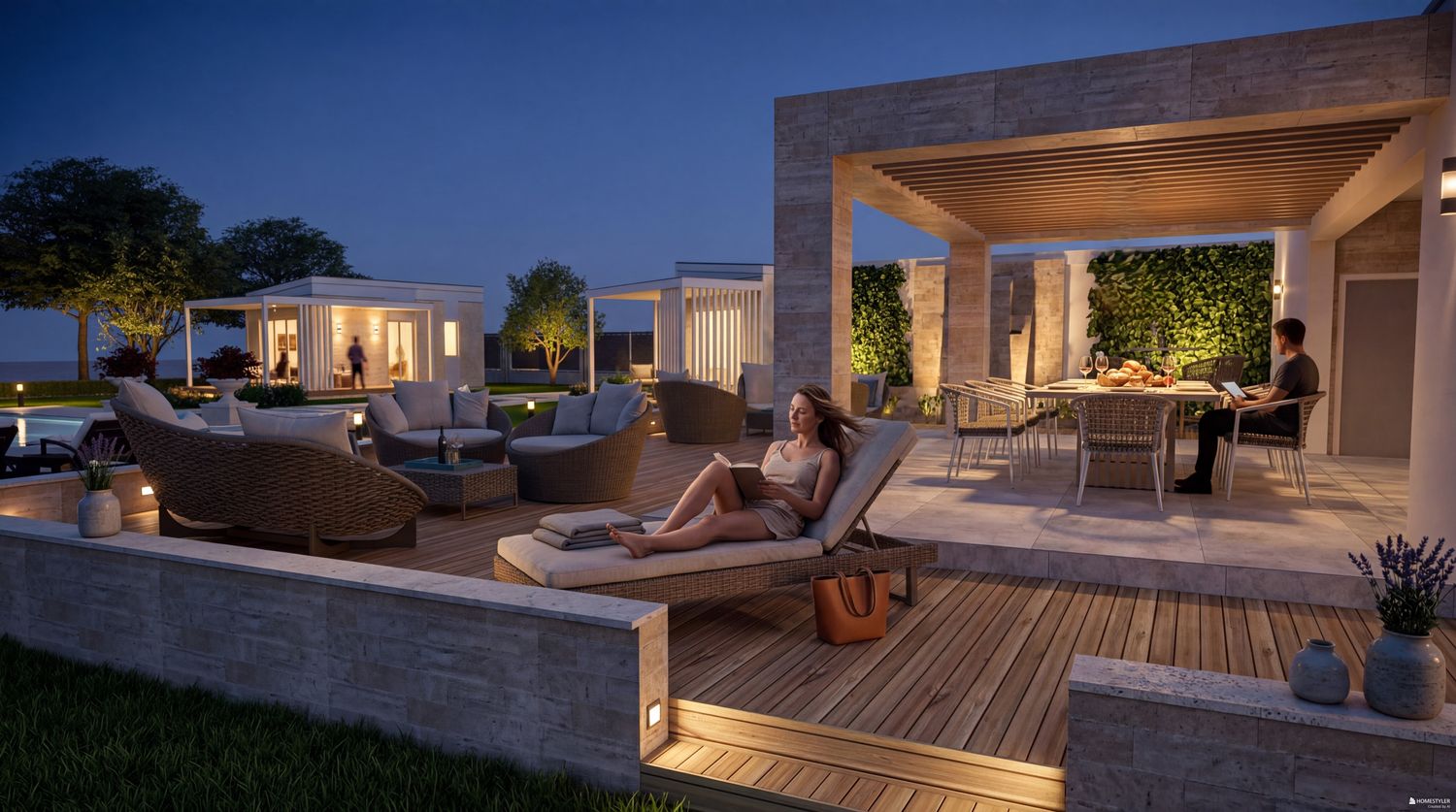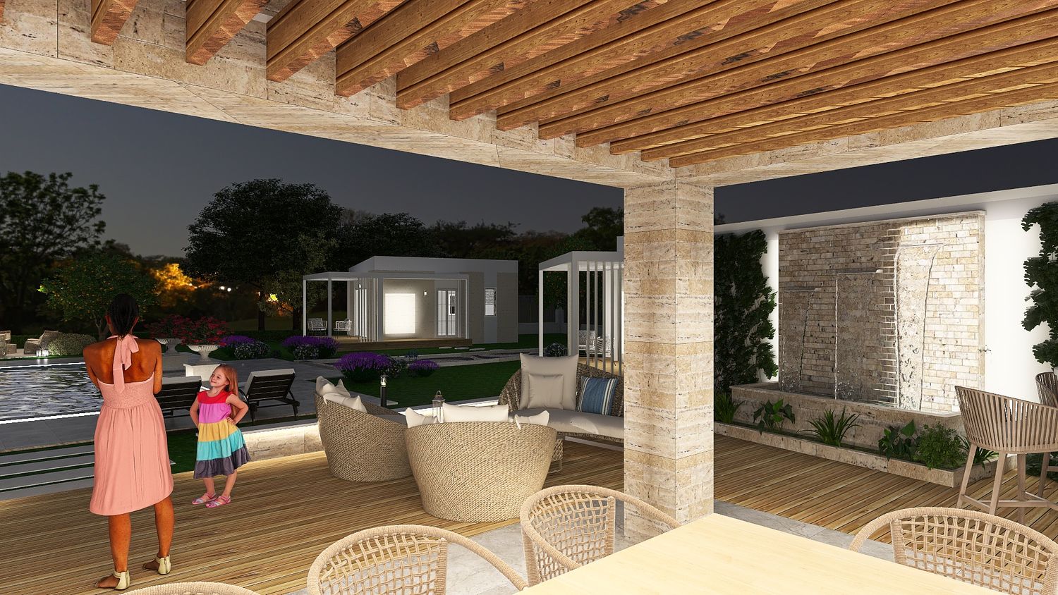 Ultimately, the proposal is conceived as a harmonious and thoughtfully orchestrated environment โ one where clarity of function and richness of atmosphere are seamlessly integrated, creating an outdoor setting that effortlessly accommodates both vibrant social interaction and moments of quiet retreat, offering guests a place that is not only functional, but deeply evocative and memorable.
