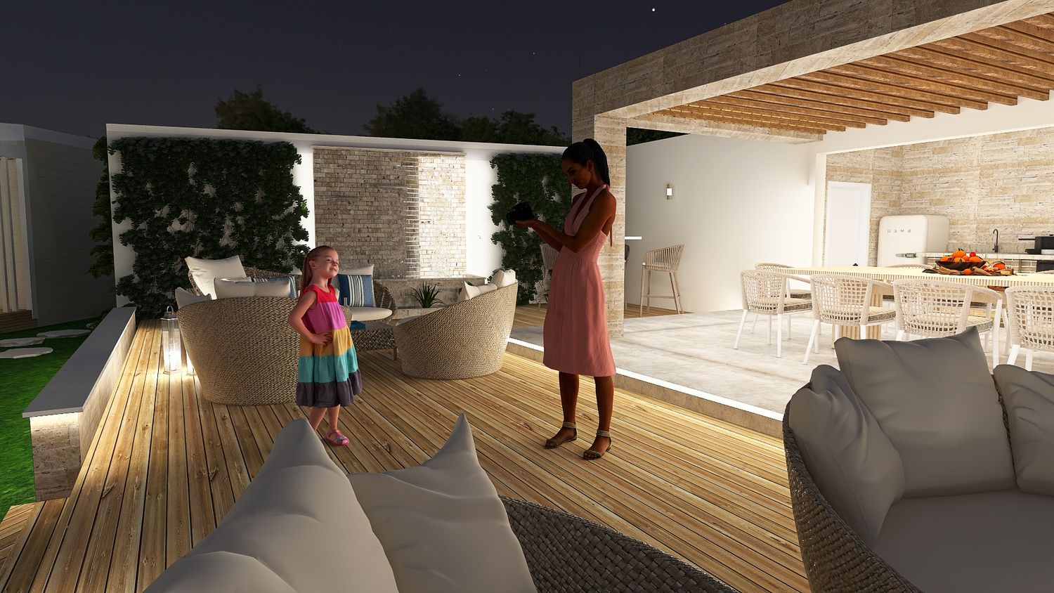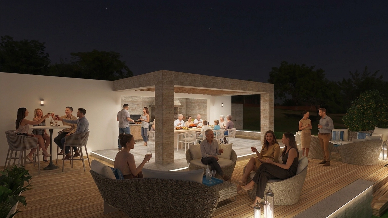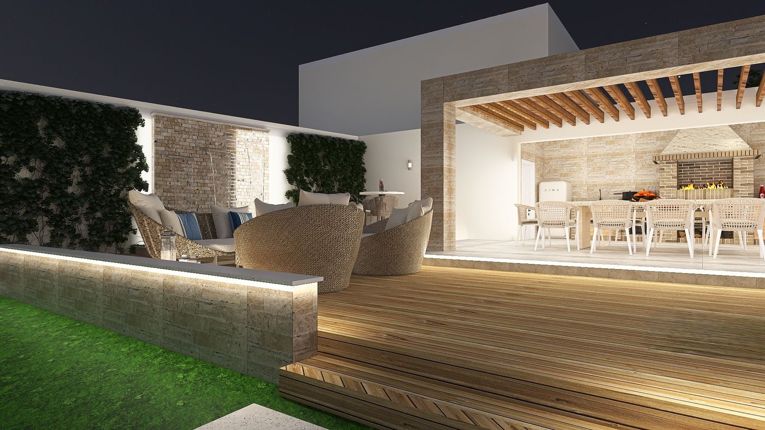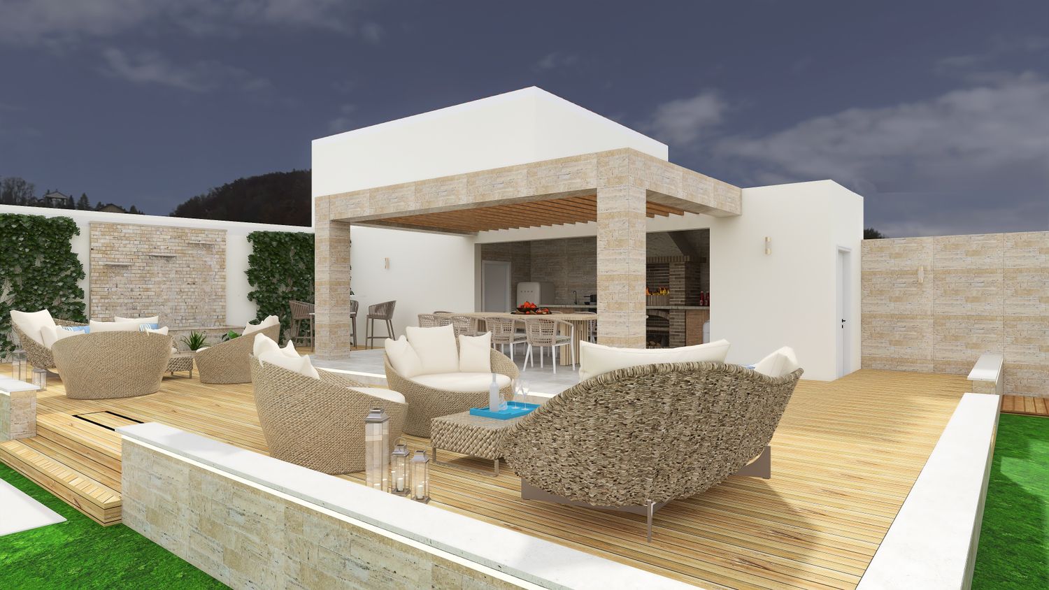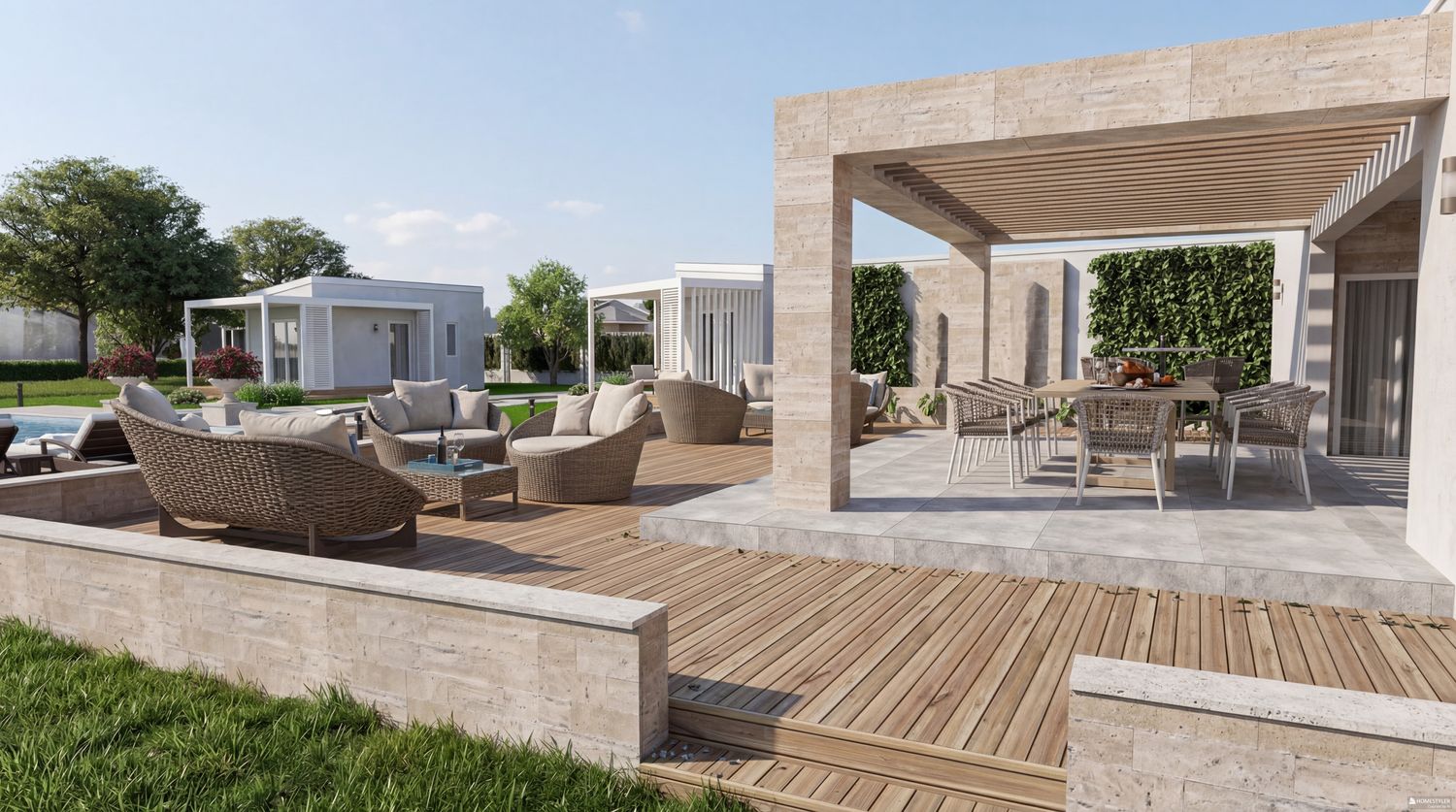 Ultimately, the proposal is conceived as a harmonious and thoughtfully orchestrated environment โ one where clarity of function and richness of atmosphere are seamlessly integrated, creating an outdoor setting that effortlessly accommodates both vibrant social interaction and moments of quiet retreat, offering guests a place that is not only functional, but deeply evocative and memorable.