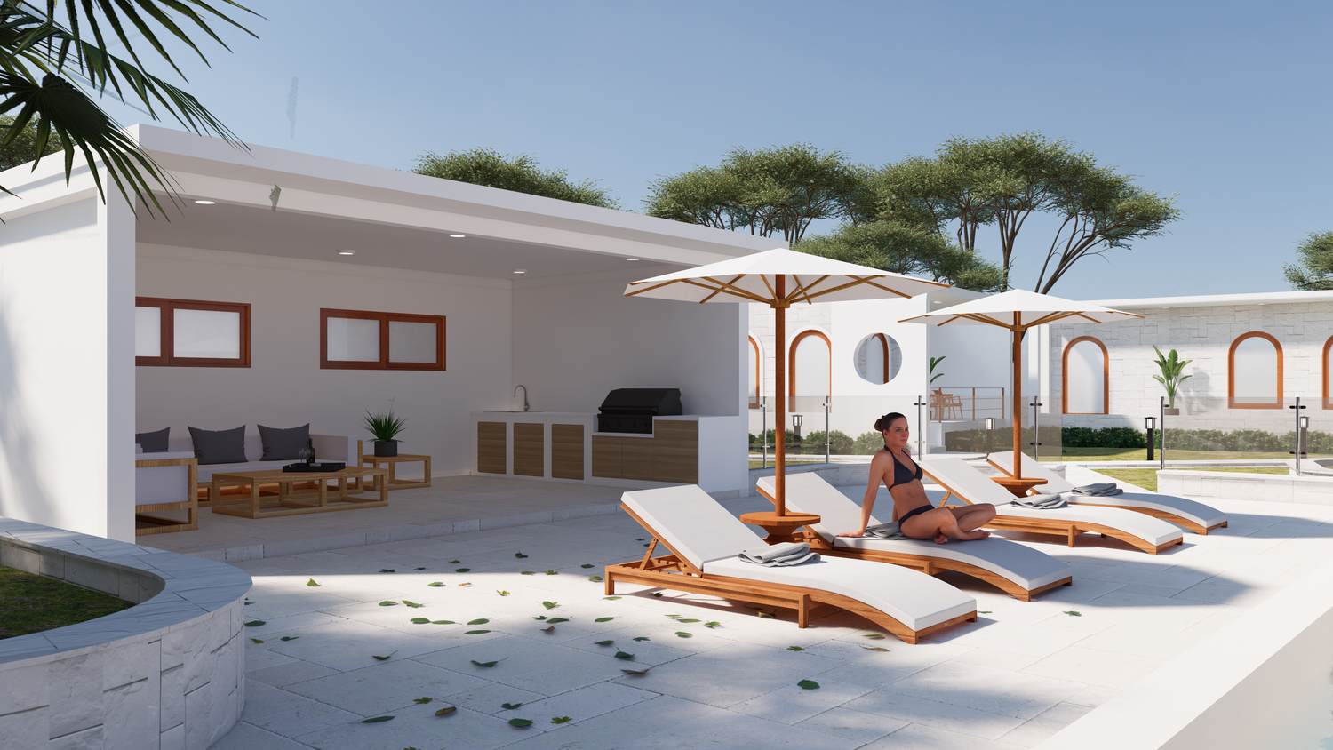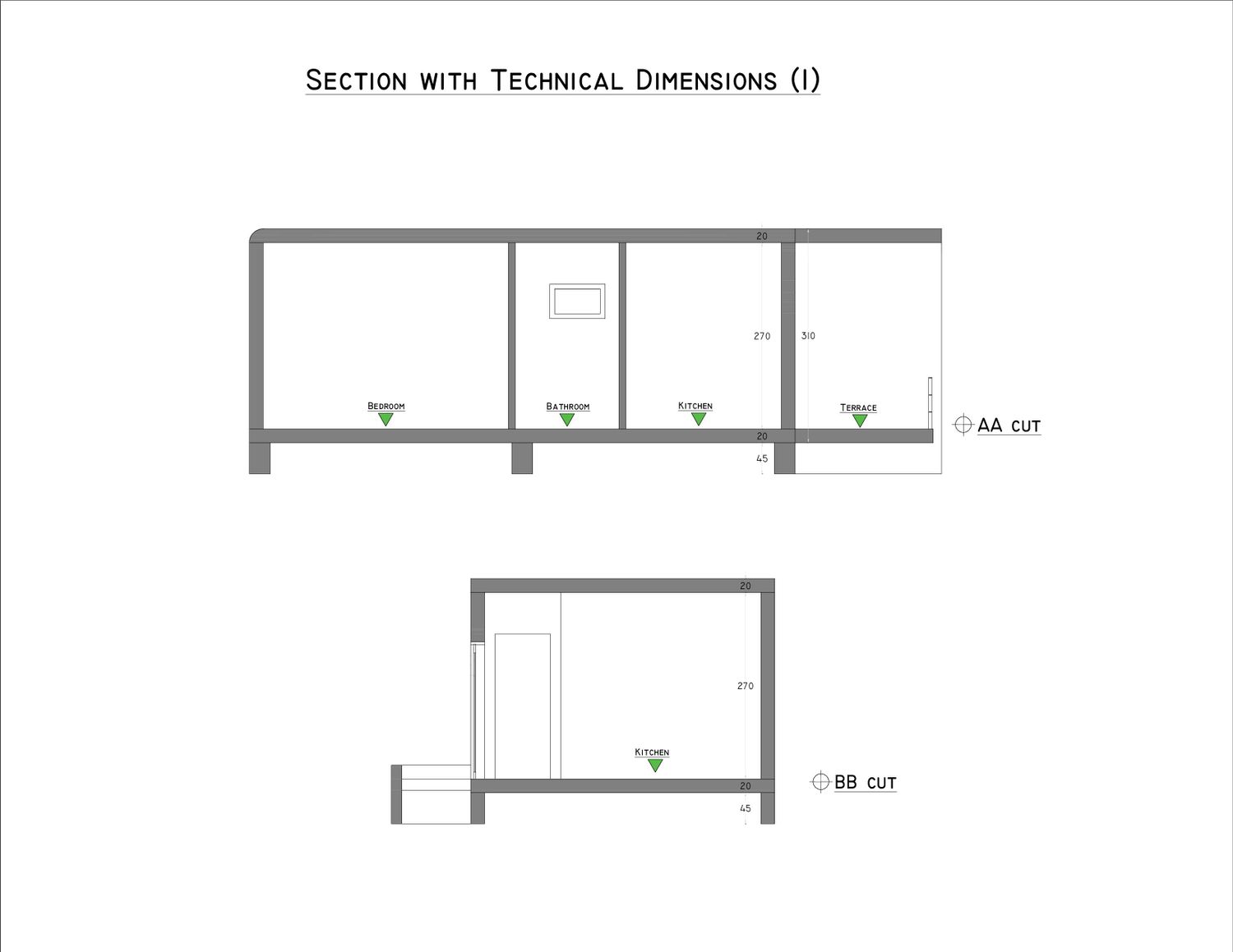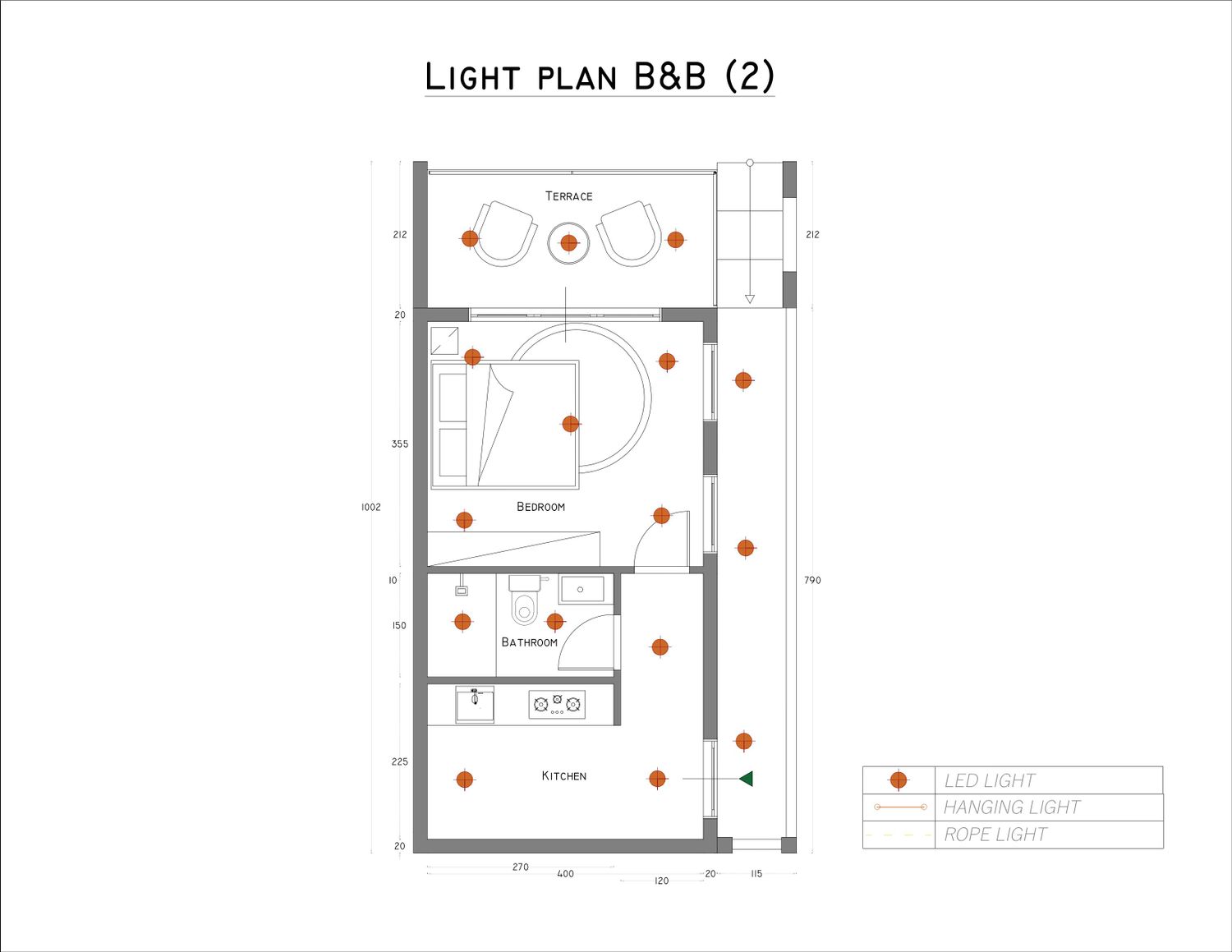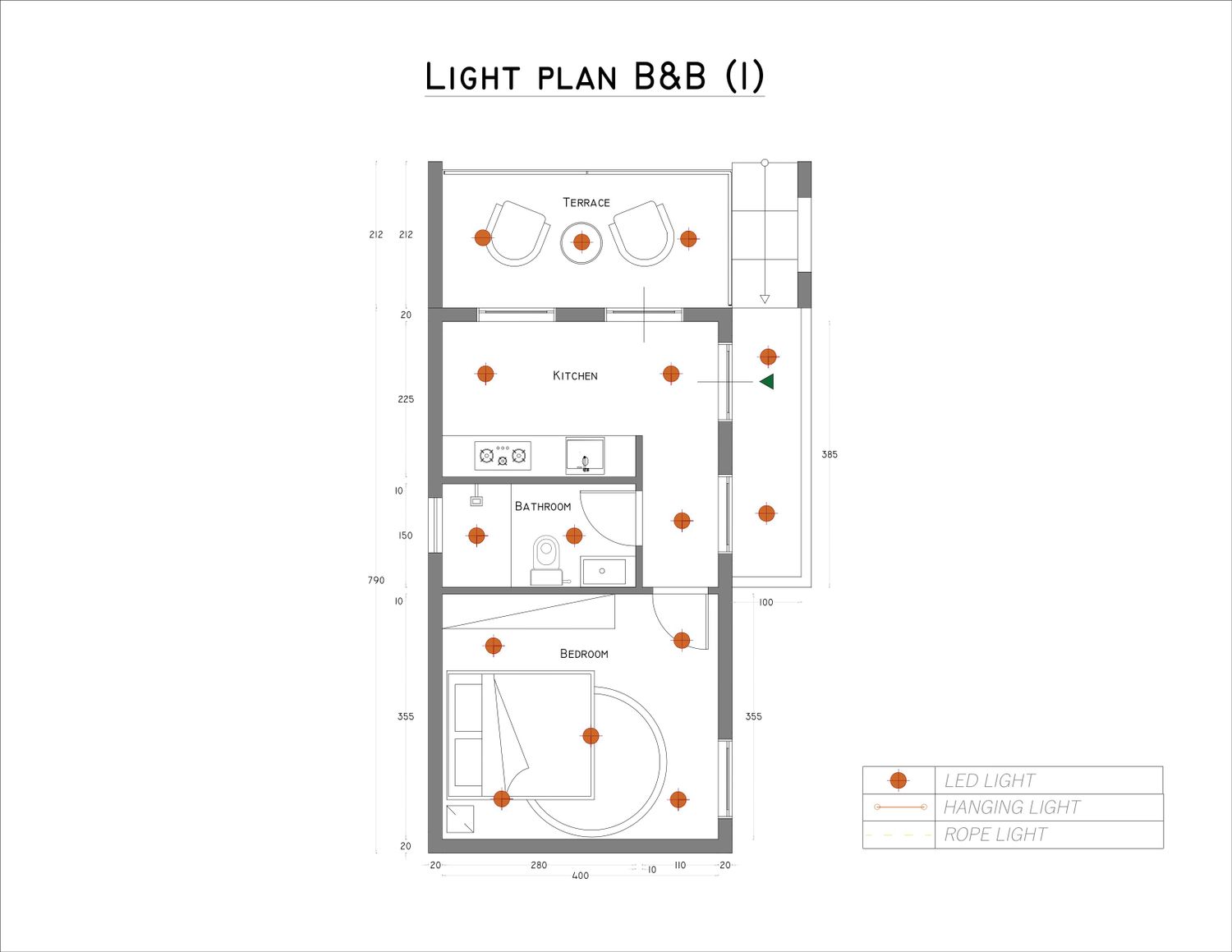 Thank you for this great project. I created two 30m2 B&Bs. Both feature the same space, but with different layouts: a bedroom, bathroom, kitchen, and terrace facing the mountain. However, the door and bedroom are positioned differently, as are the exterior designs. This was done to provide two attractive options.