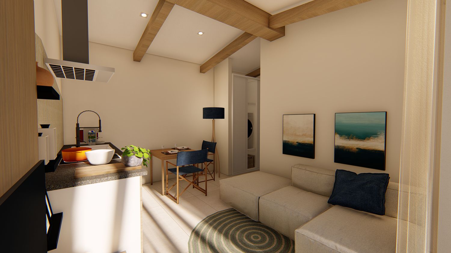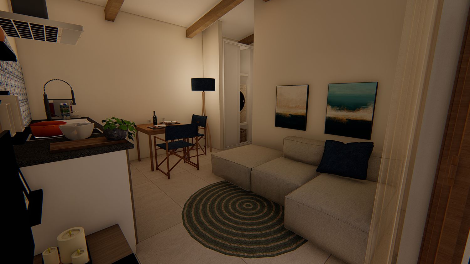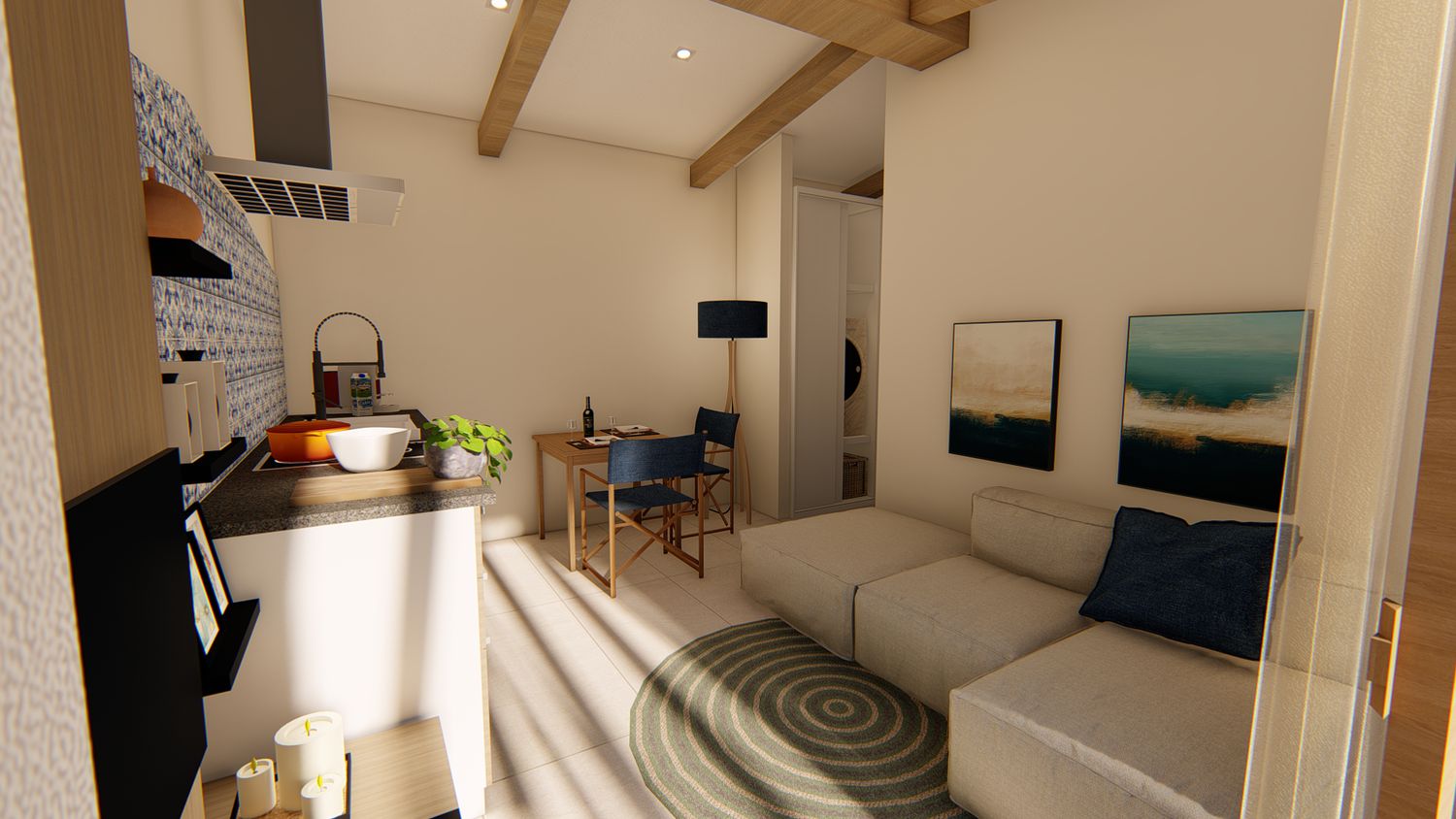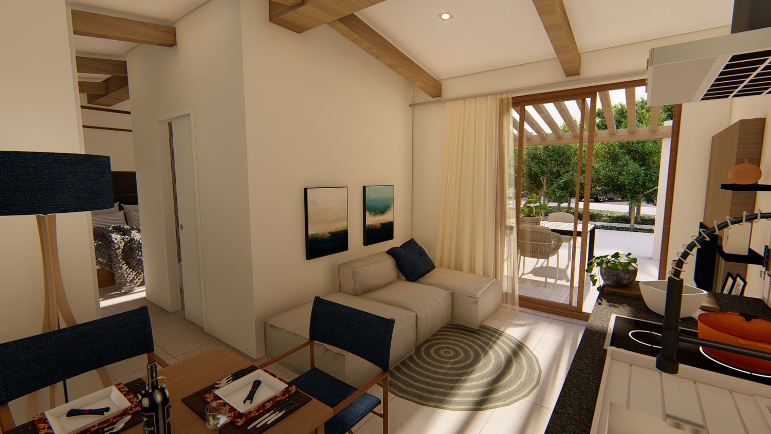 Ognuna di esse sarà dotata di uno spazio giorno, con cucina, zona pranzo, piccolo spazio lounge con divano e TV, disimpegno con guardaroba ed eventuale spazio lavasciuga integrato, zona notte con comodo letto king size, bagno con lavabo doppio e doccia passante. All'esterno, un pergolo in legno incornicia l'intera facciata principale, a protezione dell'area lounge outdoor, arredata con lettini e zona pranzo, e dotata di piscina idromassaggio privata.
