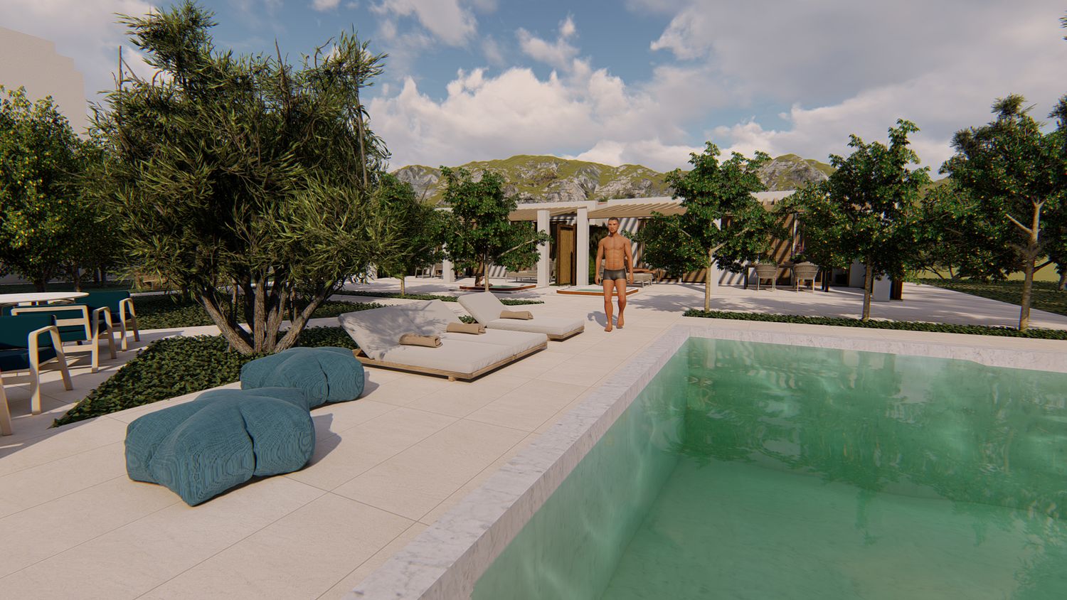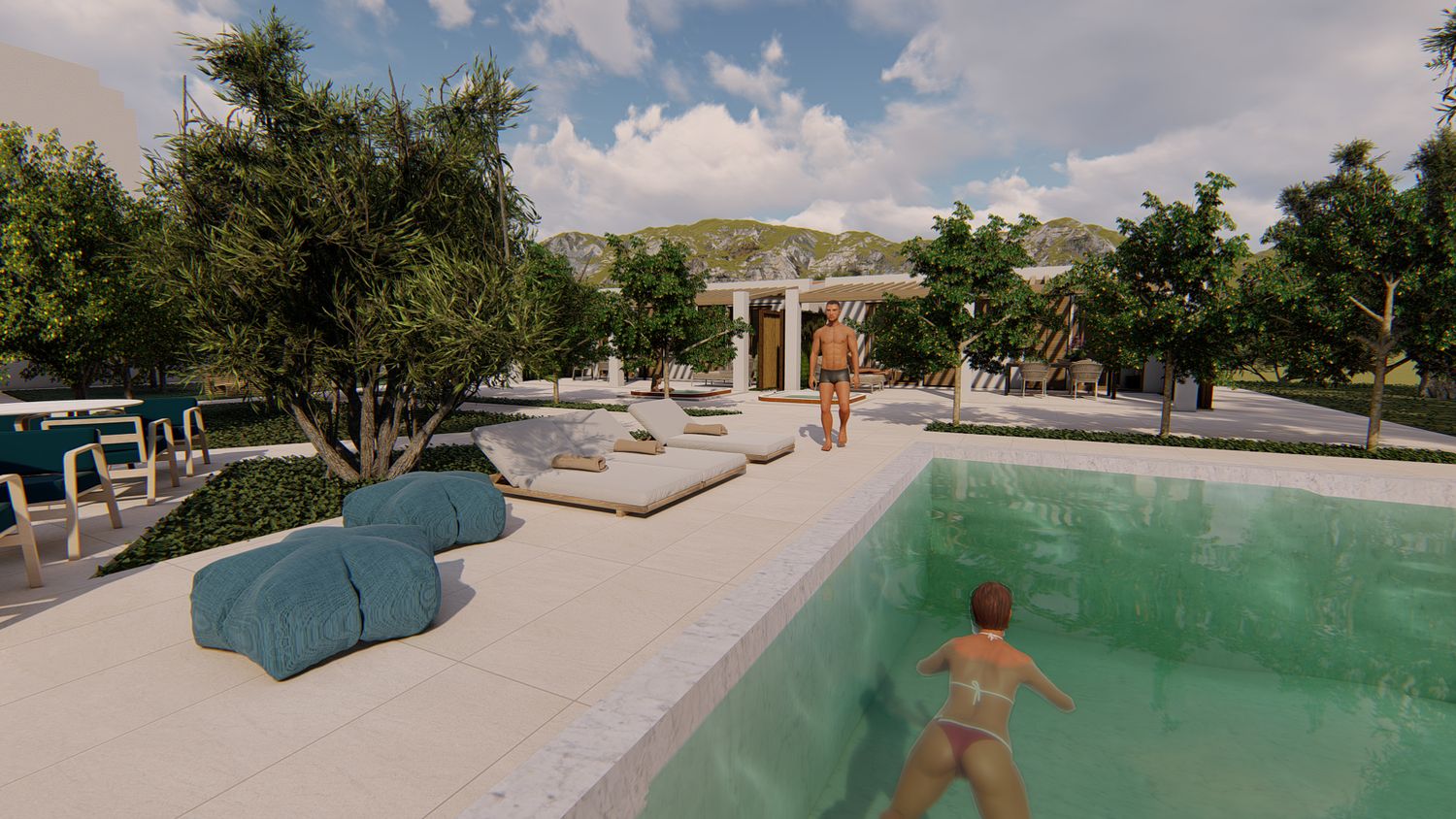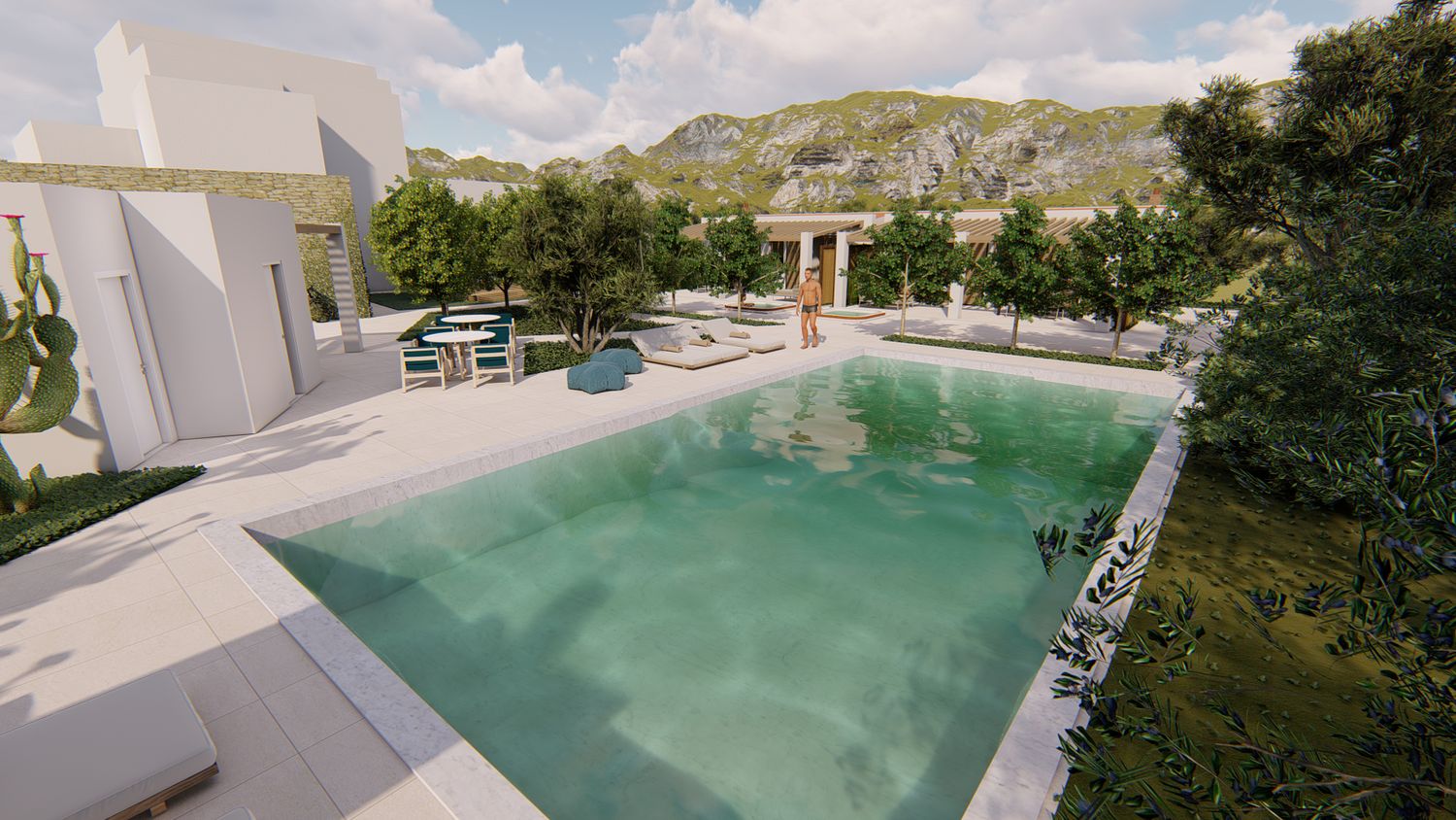 La nostra proposta intende creare uno spazio resort moderno, dalle linee pulite e delicate, che bene si integra nel paesaggio circostante, unendo contemporaneità, funzionalità e rispetto della tradizione.