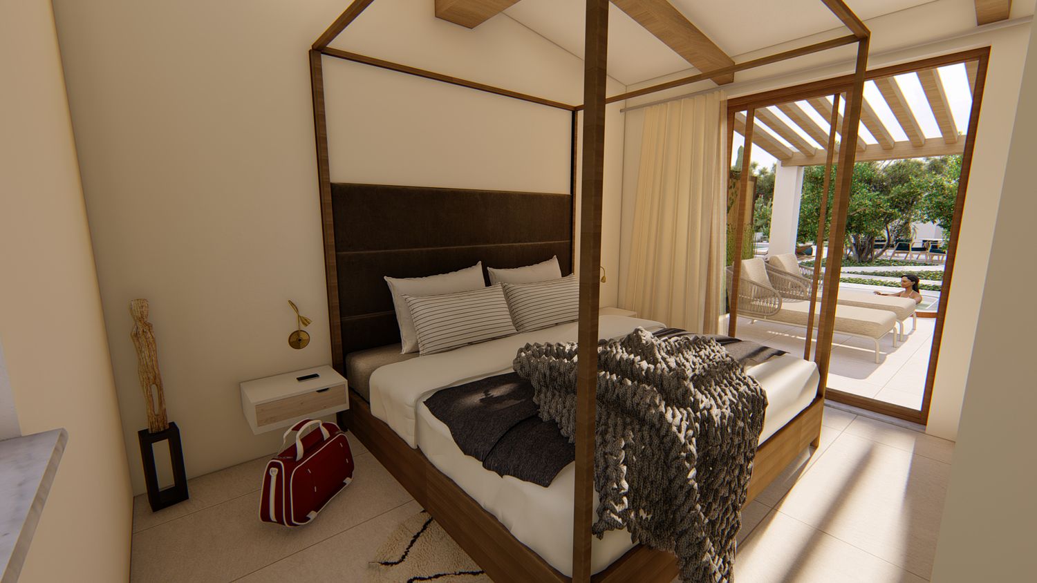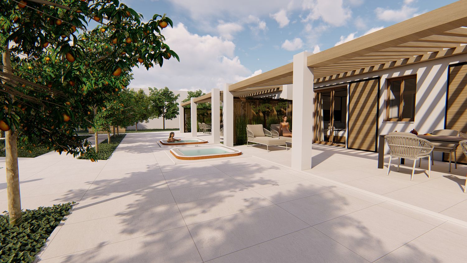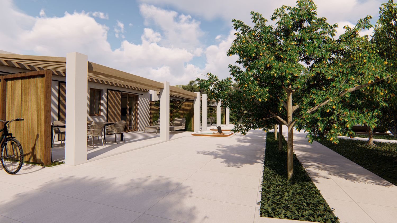 La nostra proposta intende creare uno spazio resort moderno, dalle linee pulite e delicate, che bene si integra nel paesaggio circostante, unendo contemporaneità, funzionalità e rispetto della tradizione.