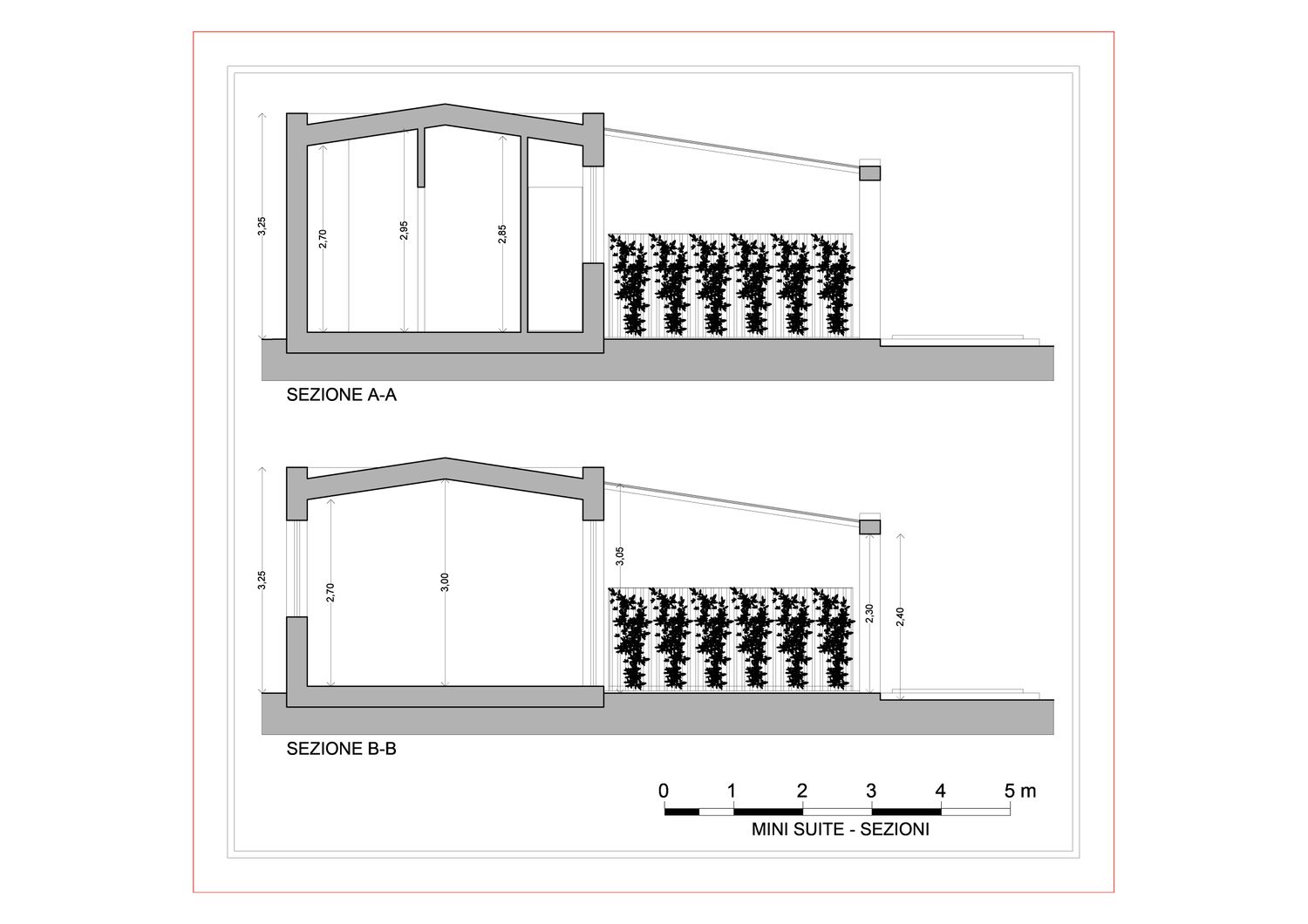 Le unità suite, ciascuna di circa 30 mq utili, saranno posizionate nello spazio più interno del lotto, lontane dai rumori e dall'eventuale traffico stradale, per garantire agli ospiti una permanenza in totale privacy e tranquillità, immersi fra le essenze arboree e con vista verso giardino, piscina e, in prospettiva, sull'Etna.