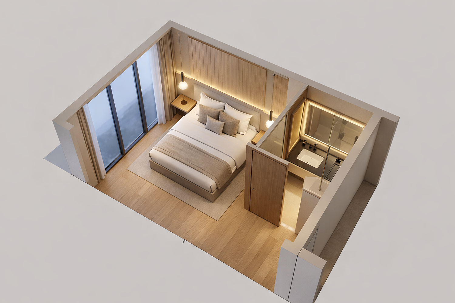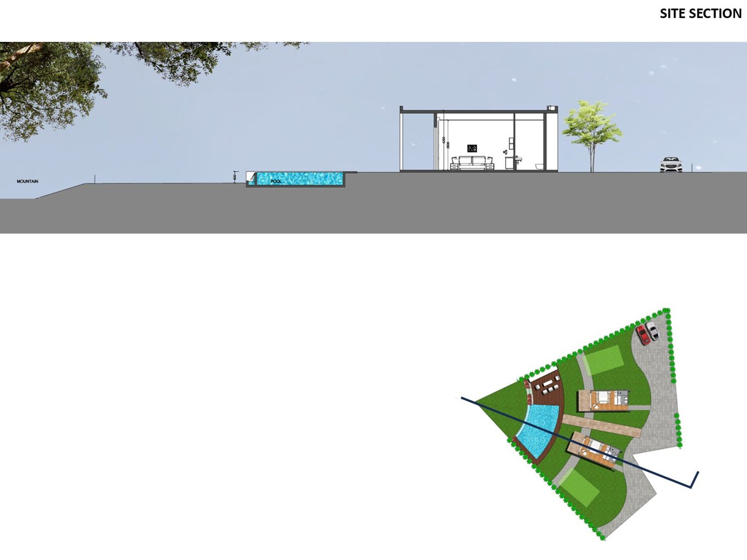 Lush green landscaping wraps the entire site, creating a buffer from surroundings and reinforcing a tranquil atmosphere. Provision for future expansion is thoughtfully integrated, allowing additional units without disturbing the existing layout.