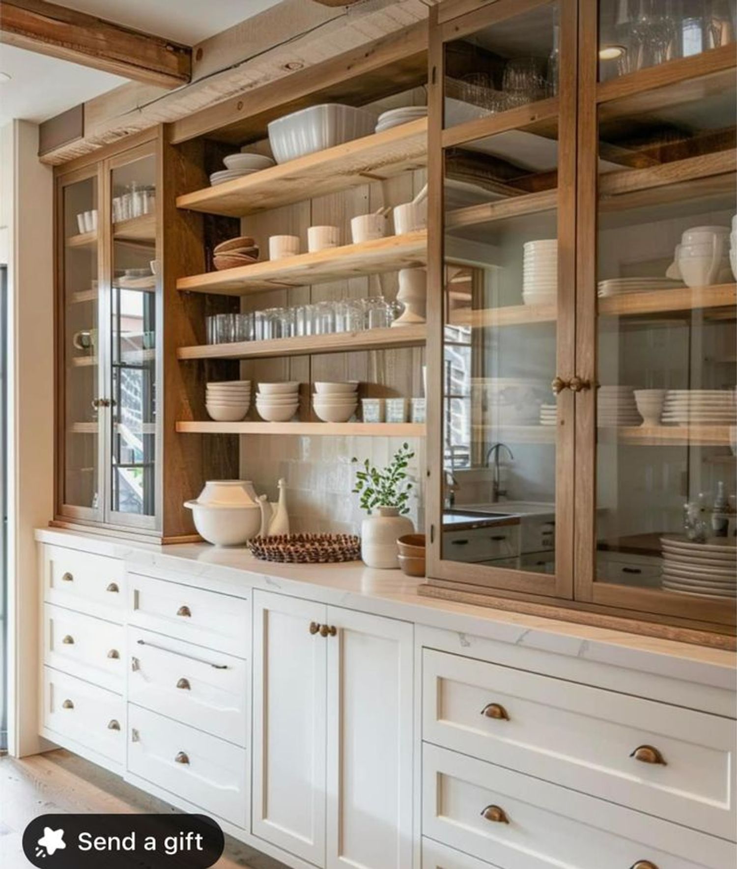 We’d like dedicated spaces for pots, plates, glasses, and our heirloom sideboard.