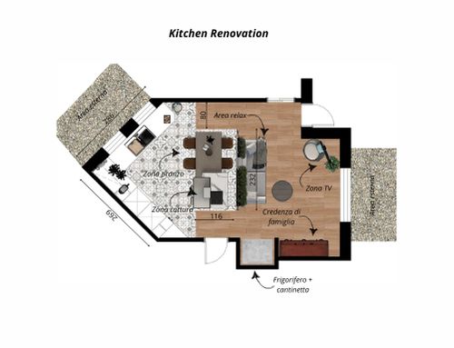 Vorrei rinnovare la cucina, stavo pensando anche ad una soluzione di ritinteggiatura dei mobili che sono ancora in ottimo stato. La cucina di ora è poco funzionale, non ha spazi per riporre le cose e una colonna troppo profonda . Inoltre i pensili alti sono poco fruibili abbiamo una credenza che è un mobile di famiglia a cui mio marito tiene particolarmente. È la stanza che usiamo di più. Anche se abbiamo una sala da pranzo e un salotto che praticamente non usiamo. Vorremo mantenere il divano in cucina che è la stanza dove si riunisce la famiglia e ama stare.