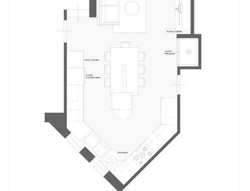The current kitchen is not very functional: there’s not enough storage space, and one of the tall units is too deep.