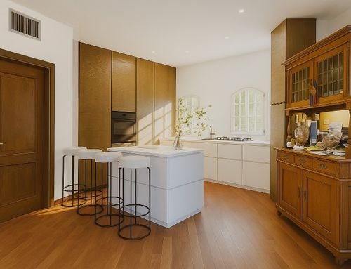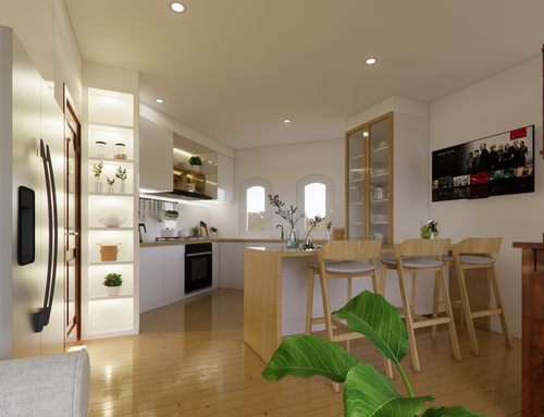 We would like a kitchen where there's enough space to cook freely, while still keeping everything well organized.