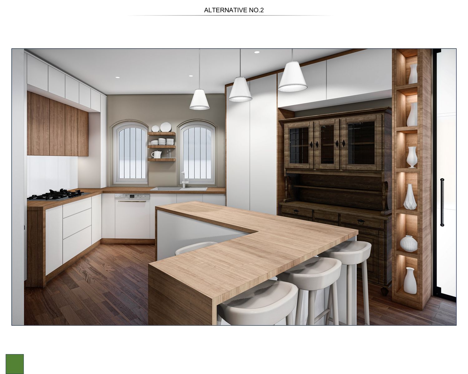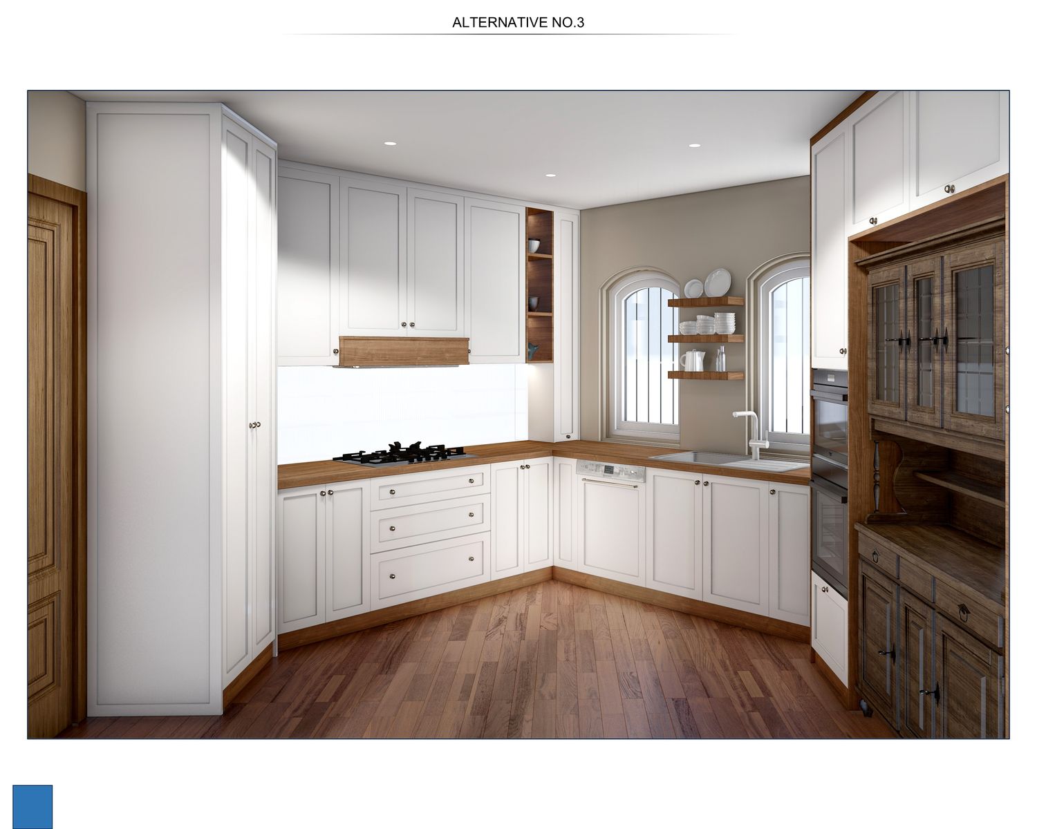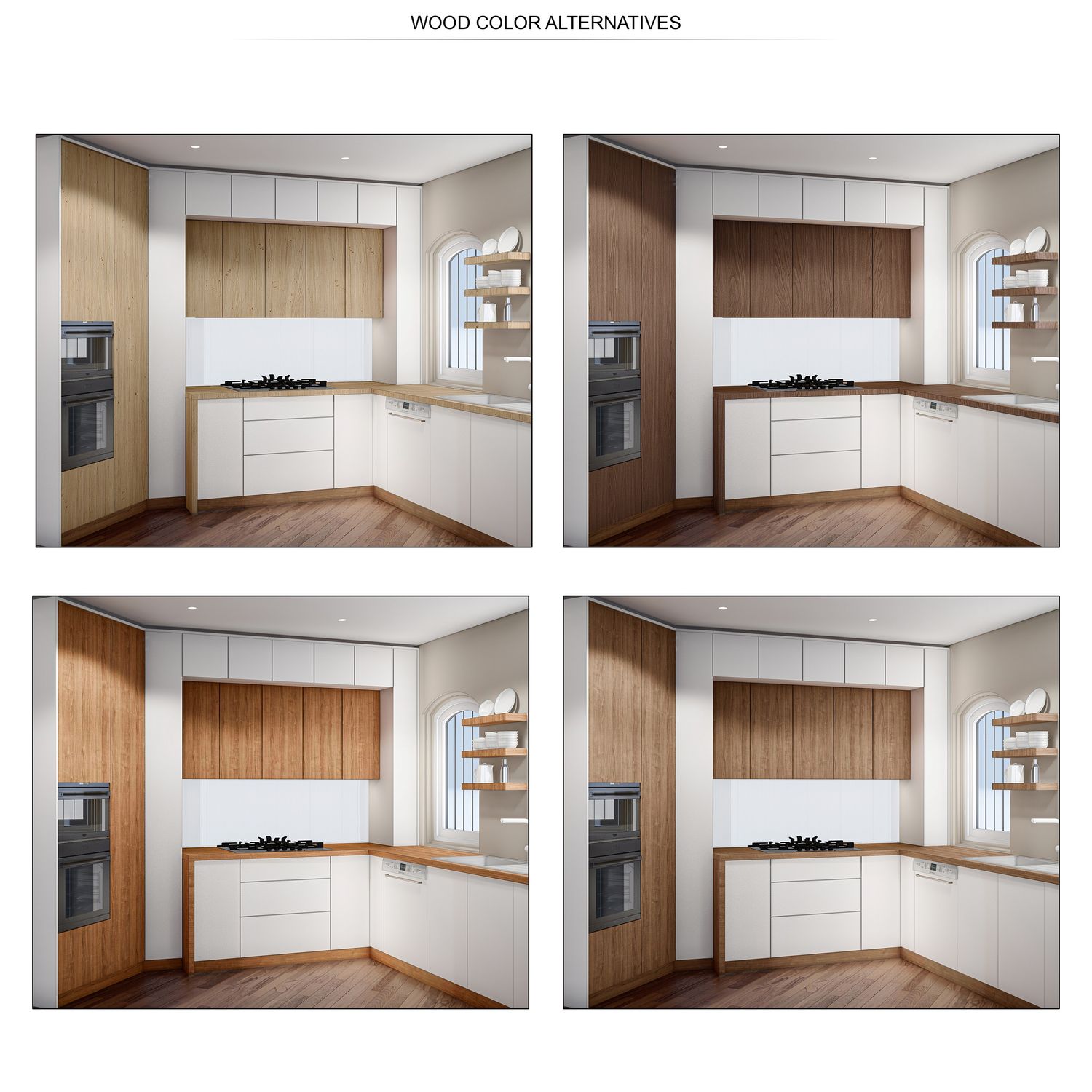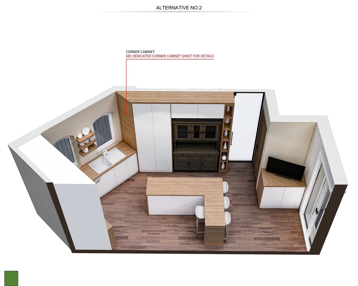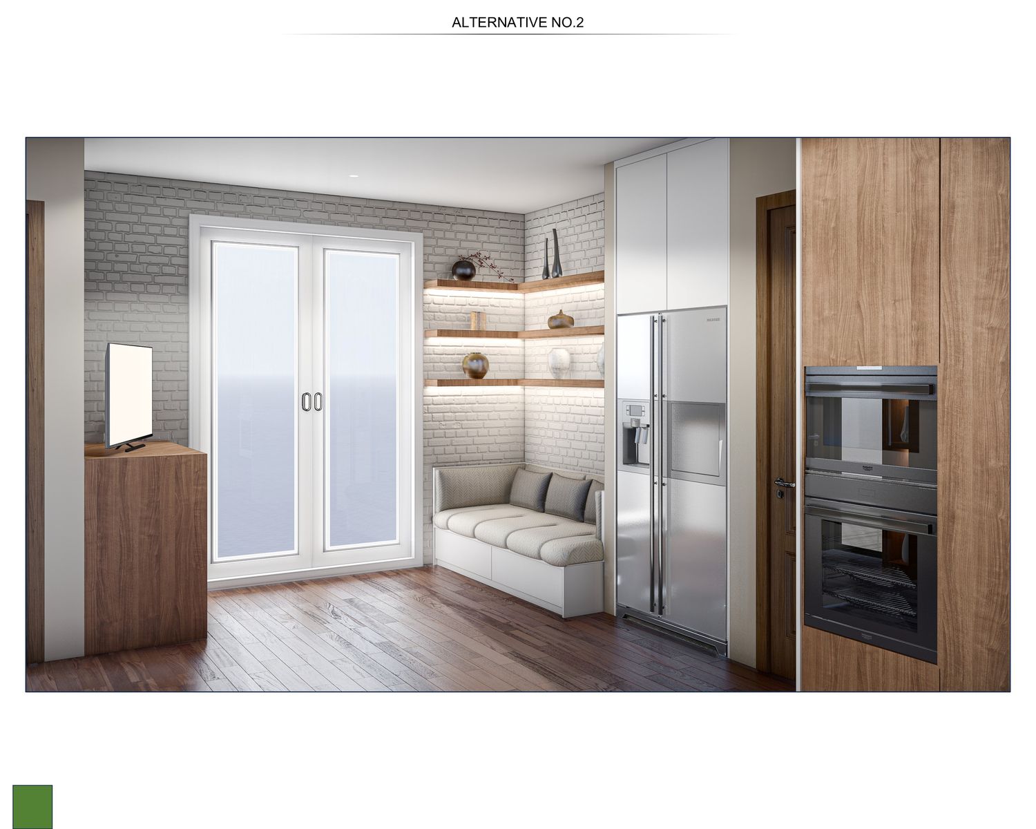 Considering existing constraints such as the fixed location of the refrigerator and the preservation of the parquet flooring, and with the goal of addressing challenges like insufficient storage space and inaccessible cabinets, we have prepared three distinct yet fully actionable design concepts. Each of these proposals offers a different approach to creating an ideal space where: