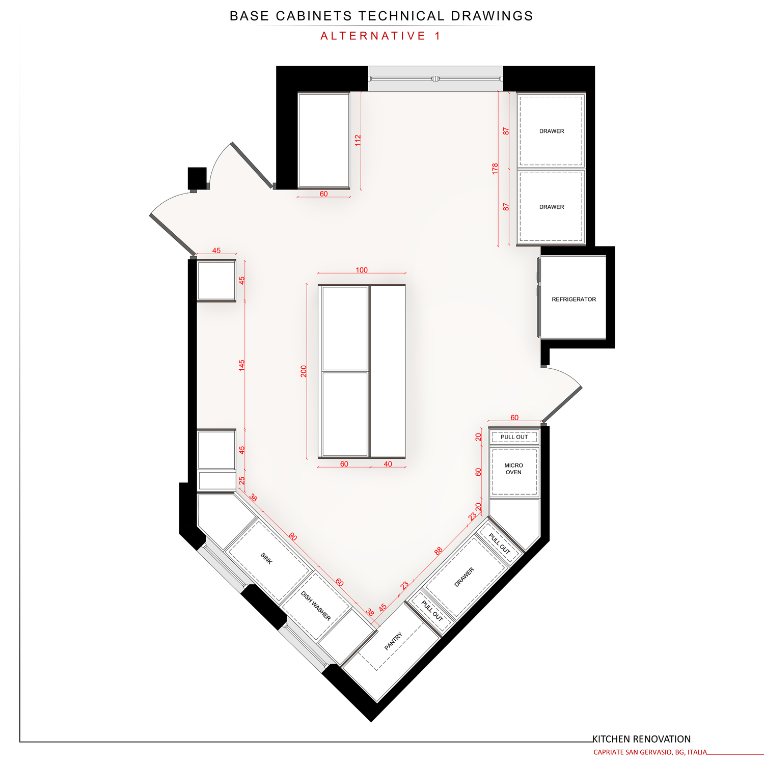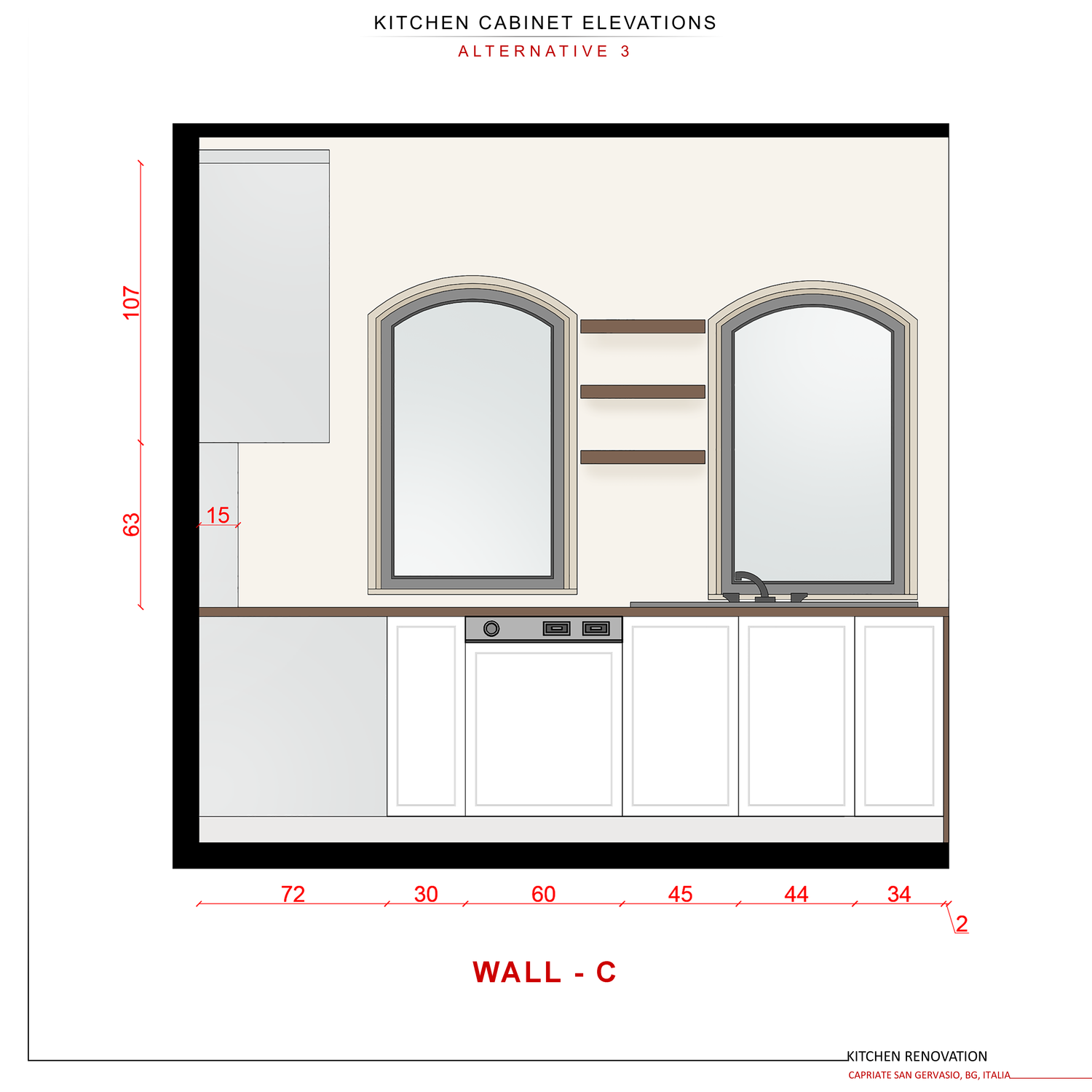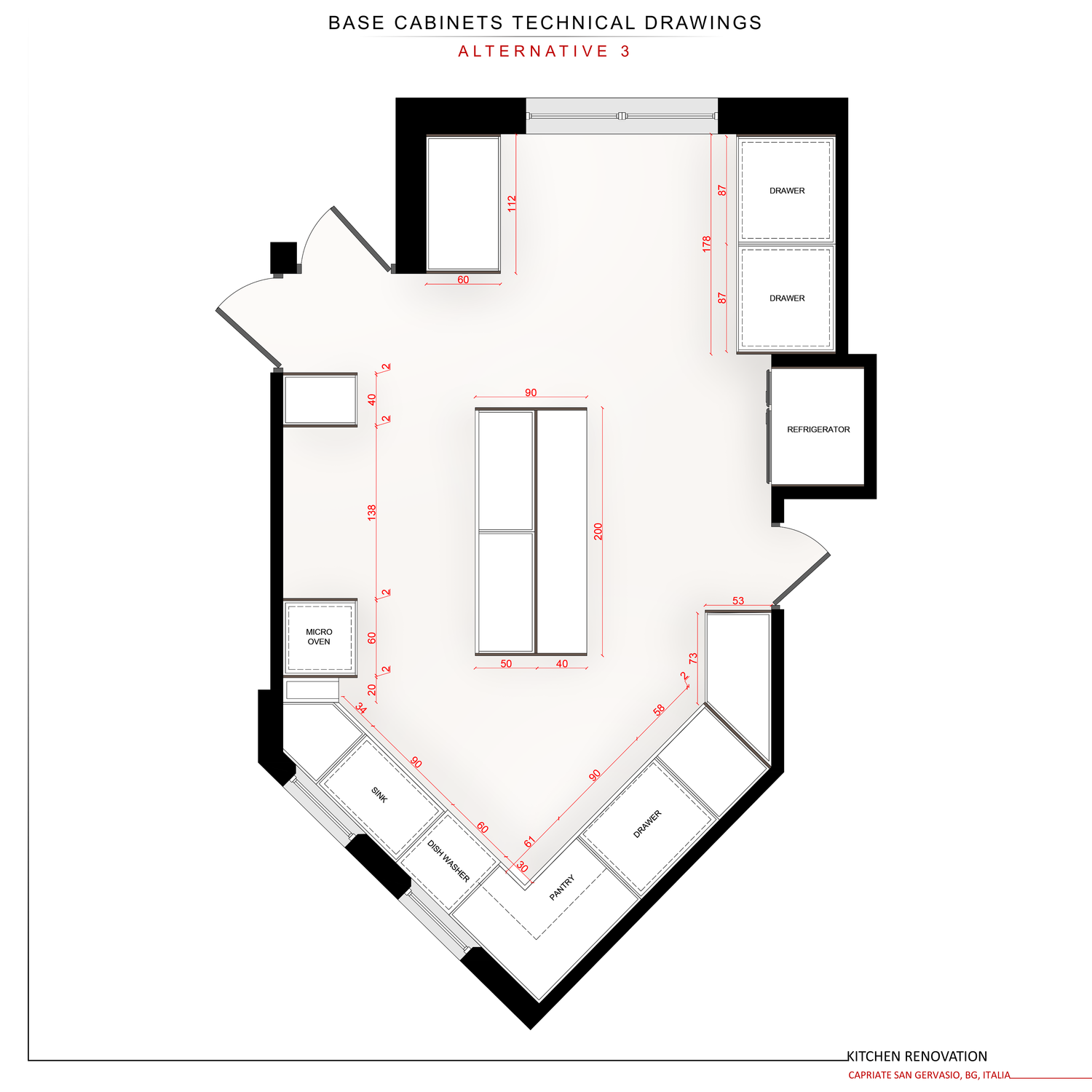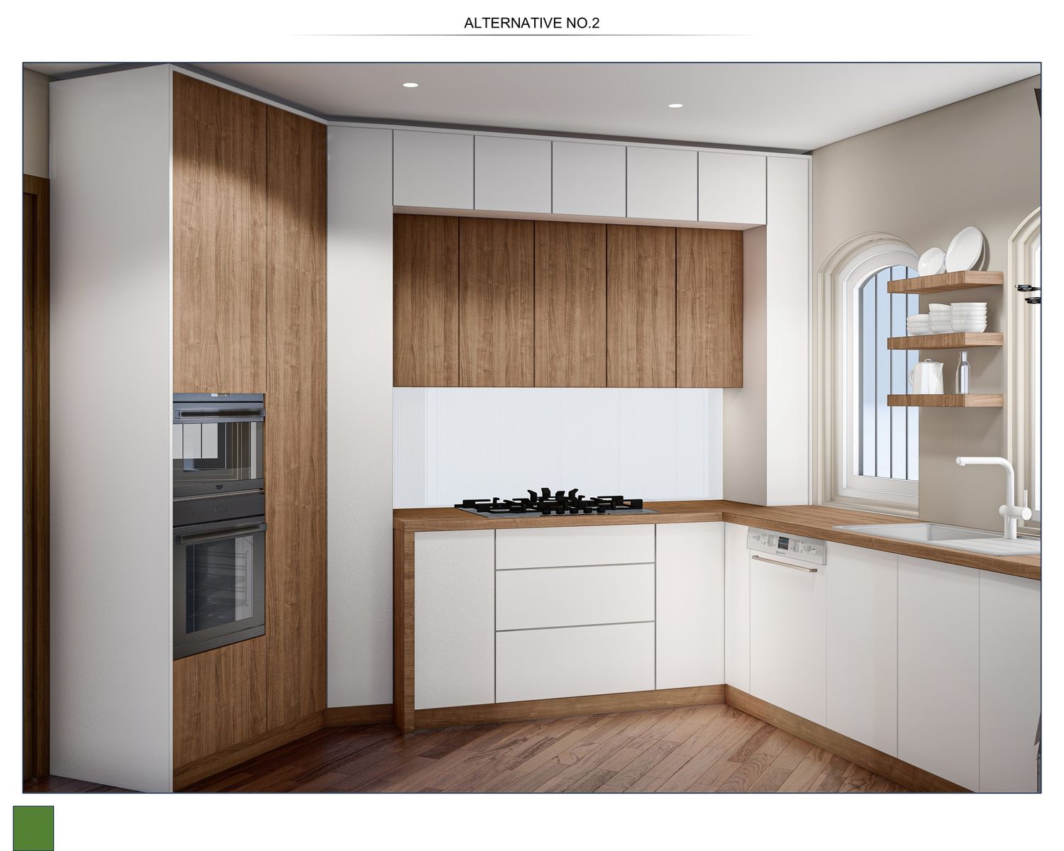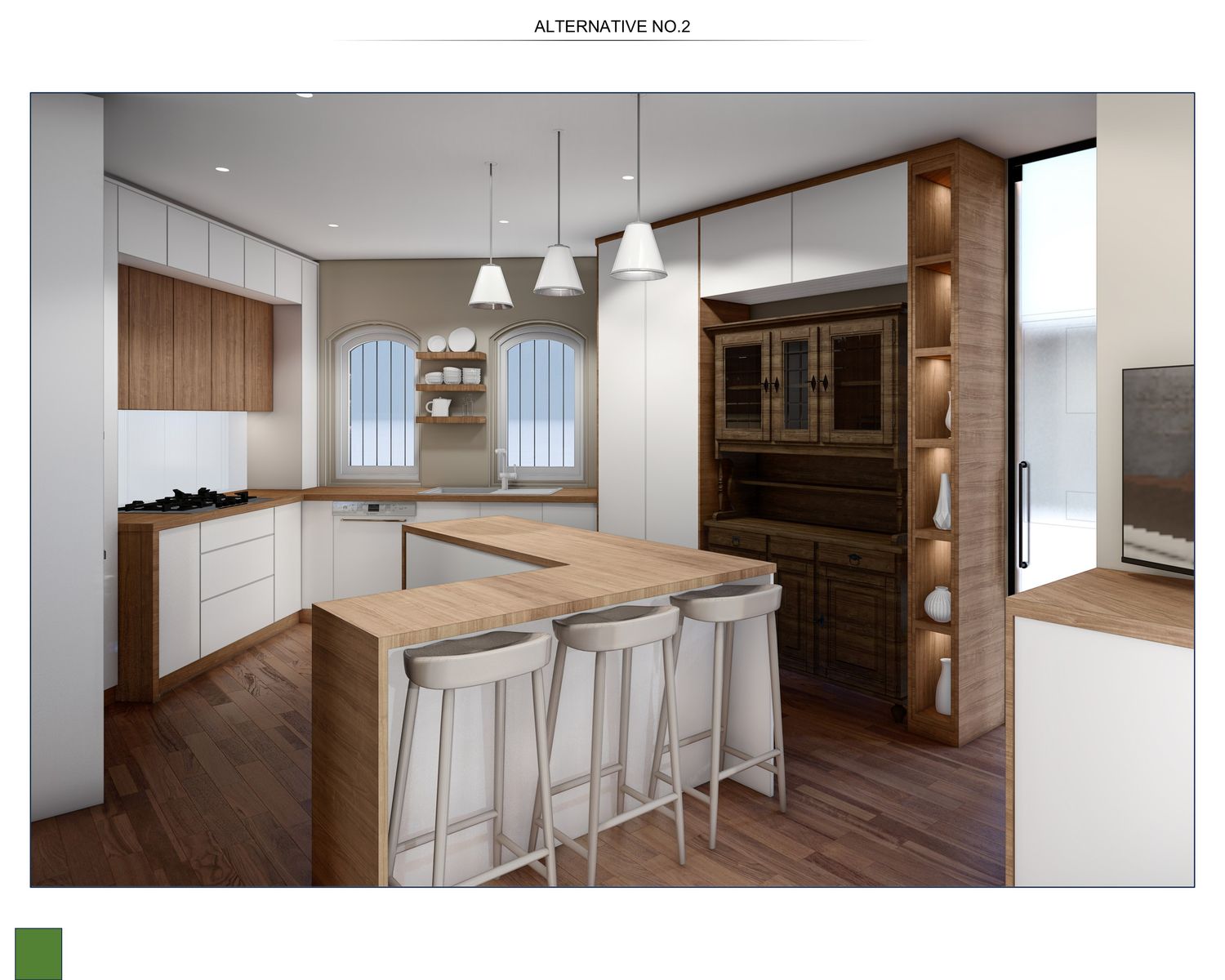 Considering existing constraints such as the fixed location of the refrigerator and the preservation of the parquet flooring, and with the goal of addressing challenges like insufficient storage space and inaccessible cabinets, we have prepared three distinct yet fully actionable design concepts. Each of these proposals offers a different approach to creating an ideal space where: