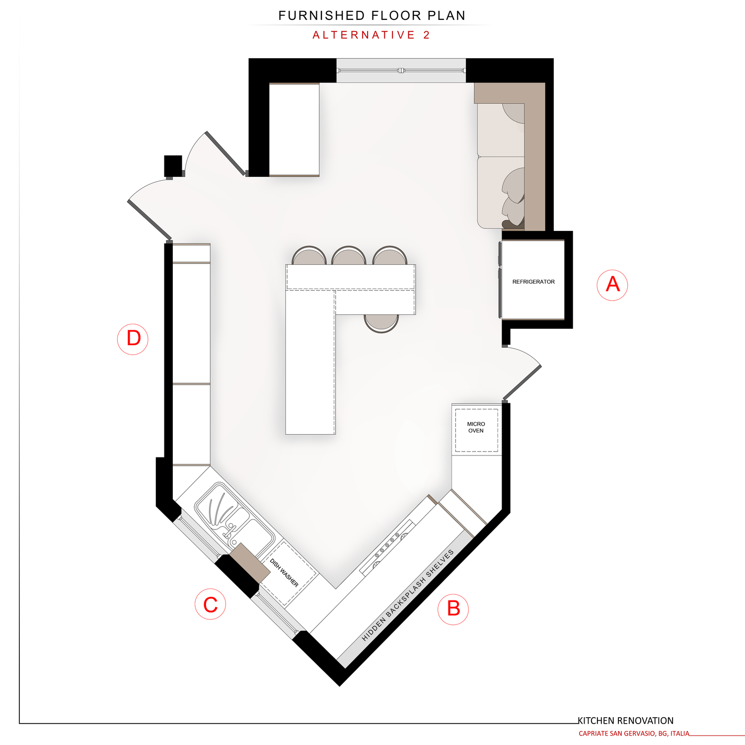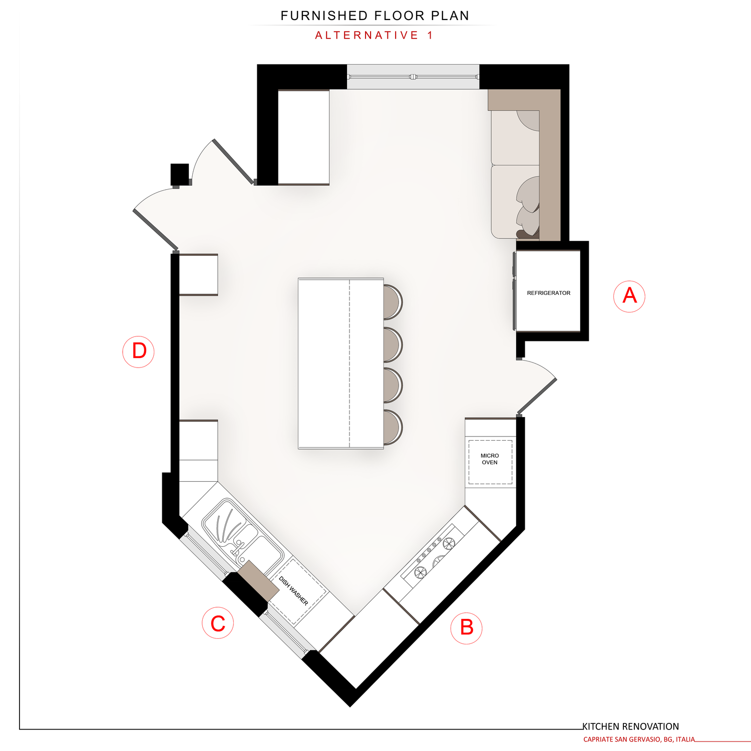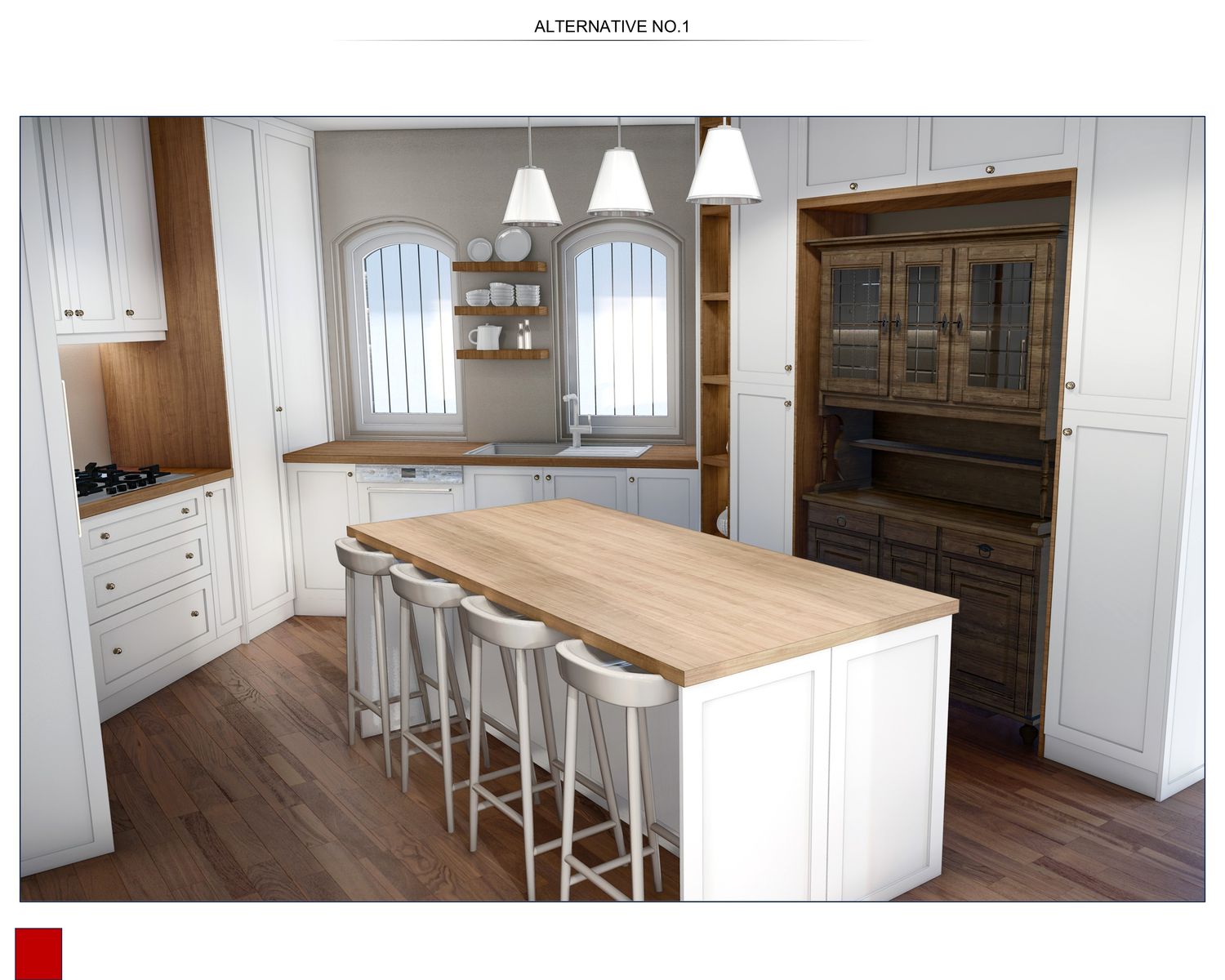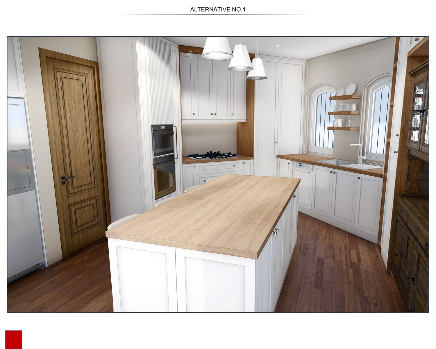 Il nostro team ha studiato attentamente e con grande entusiasmo la vostra richiesta, acquisendo una profonda comprensione delle vostre esigenze, sfide e desideri unici. Vediamo la cucina non solo come uno spazio di lavoro, ma come il cuore pulsante della casa e un luogo di ritrovo per la famiglia, e sappiamo che la conservazione di elementi come la preziosa credenza di famiglia e il comodo divano in questo spazio ha un'importanza speciale per voi.