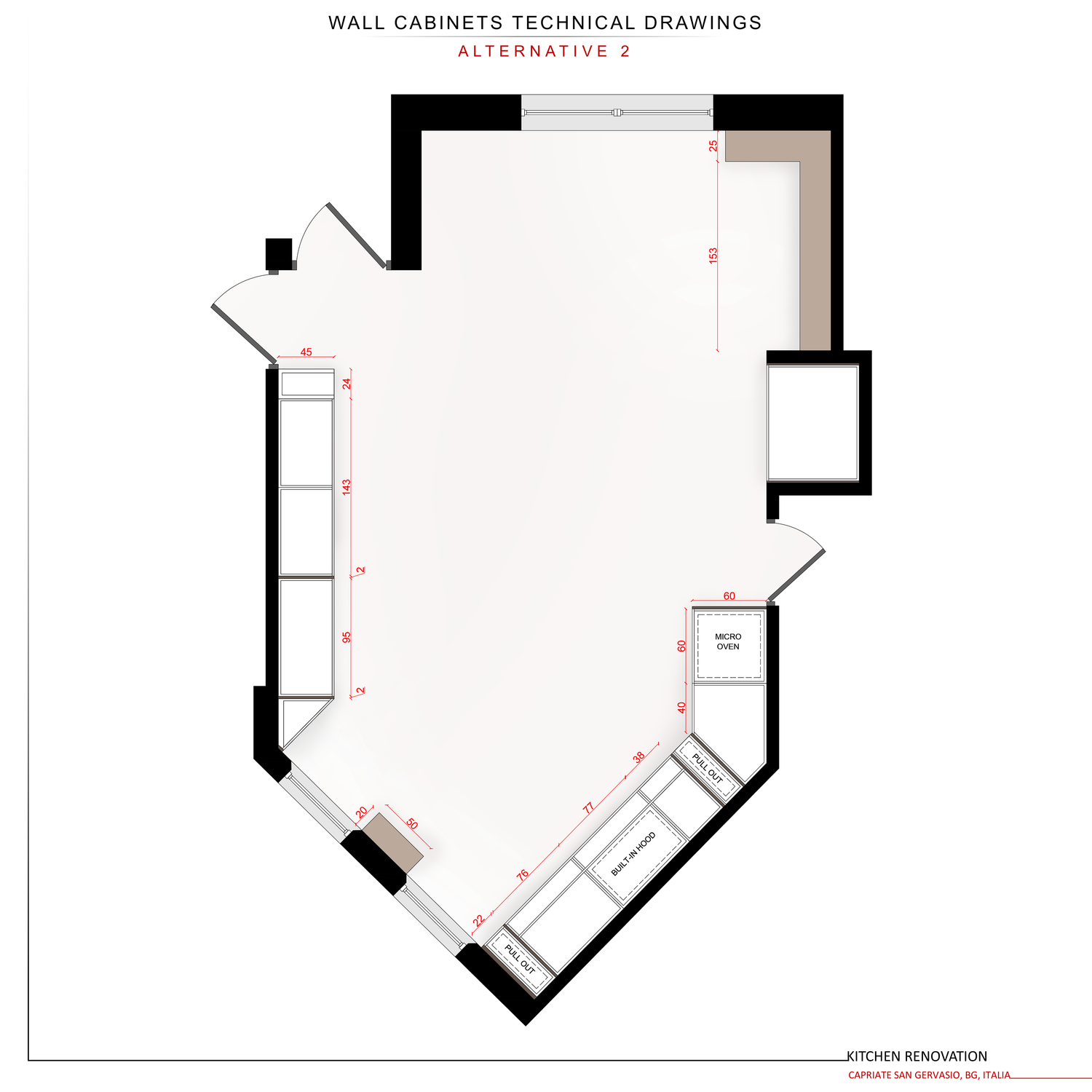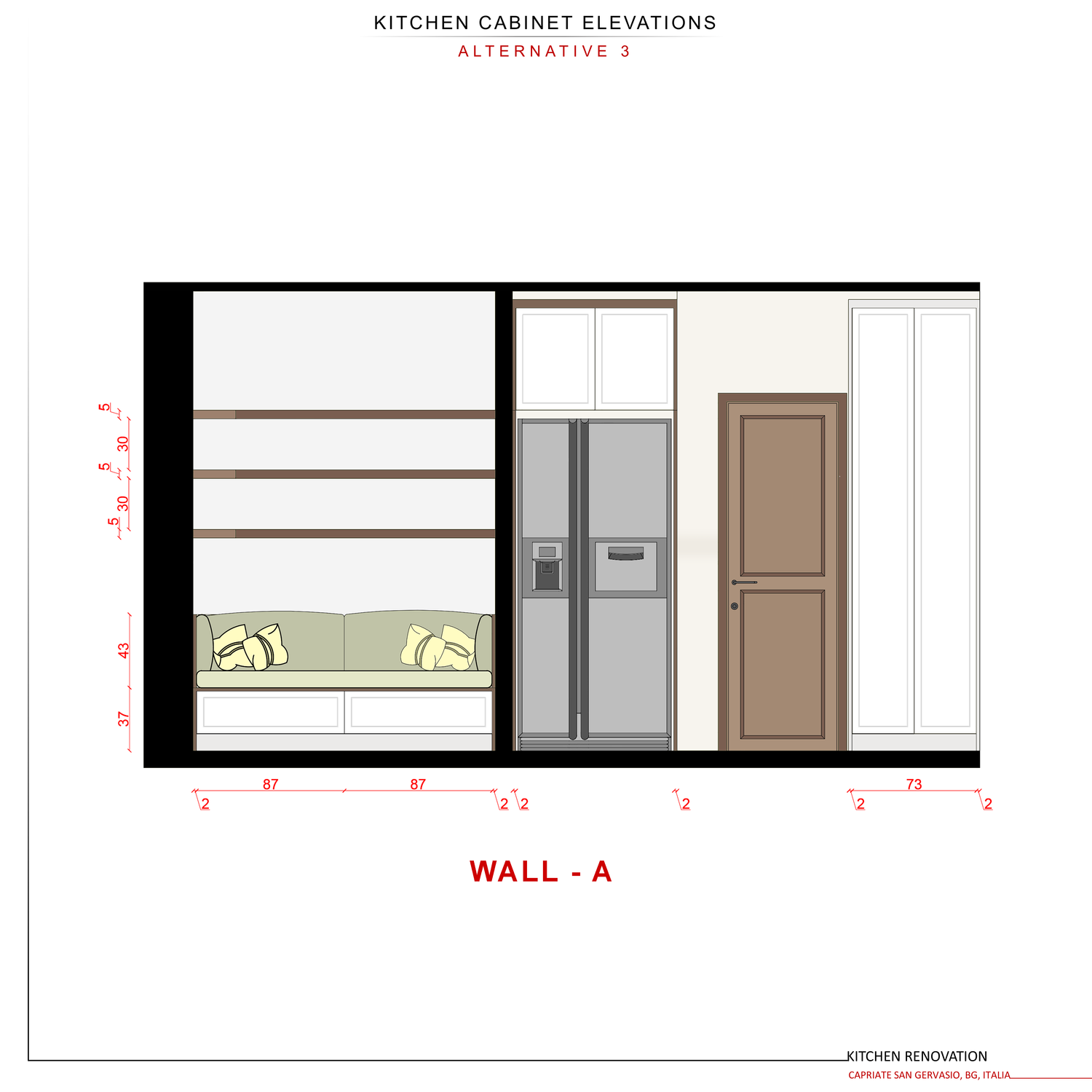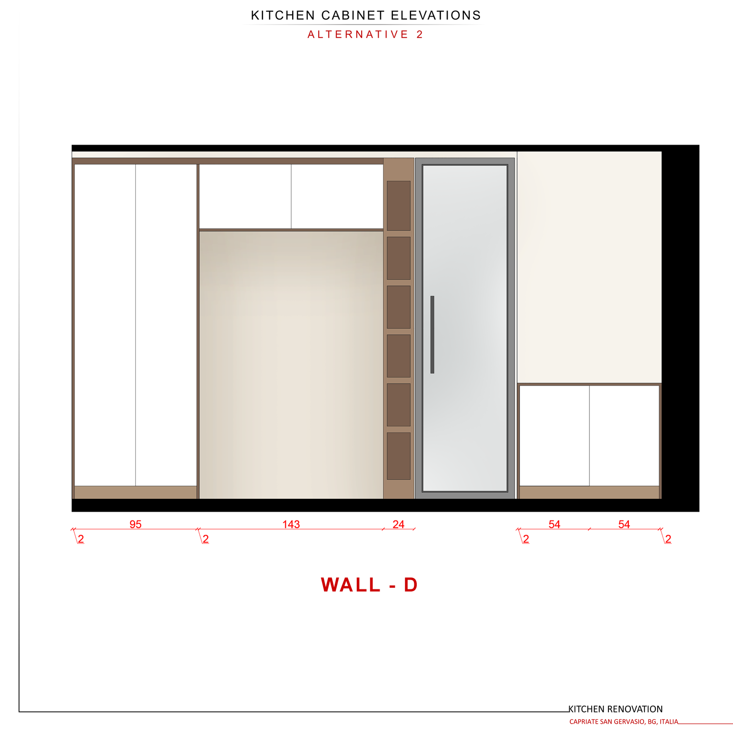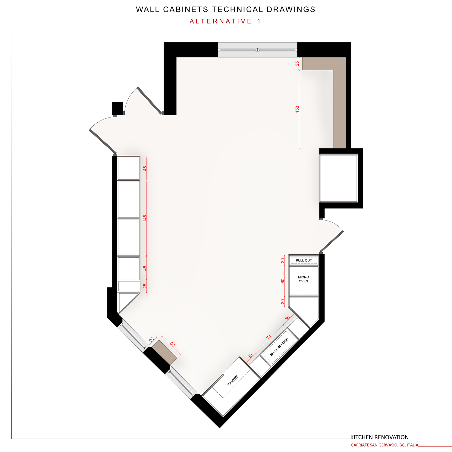 Considerando i vincoli esistenti, come la posizione fissa del frigorifero e il mantenimento del pavimento in parquet, e con l'obiettivo di risolvere sfide come lo spazio di stoccaggio insufficiente e l'accesso inadeguato ai pensili, abbiamo preparato tre concetti di design distinti ma completamente realizzabili. Ognuna di queste proposte offre un approccio diverso per creare uno spazio ideale in cui: