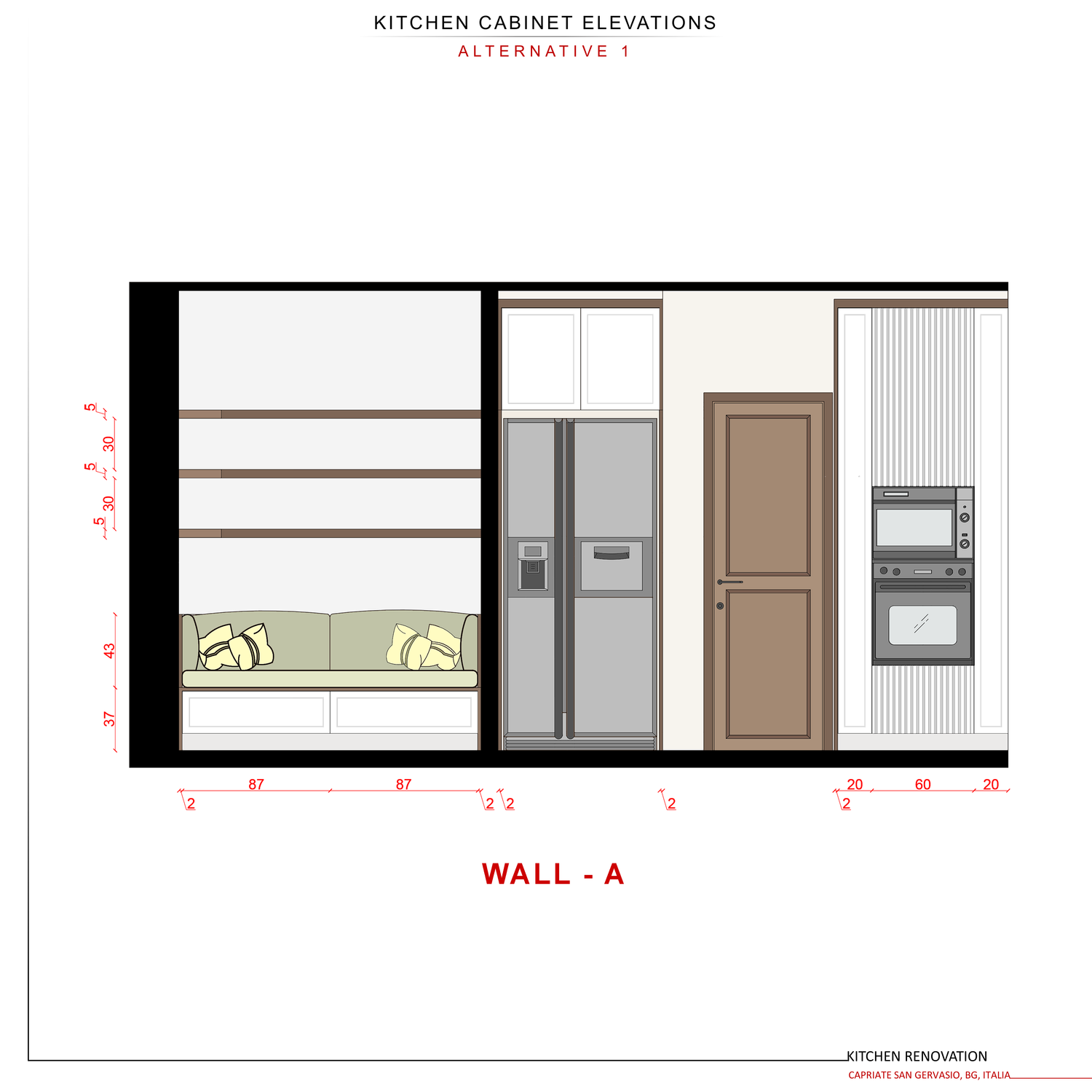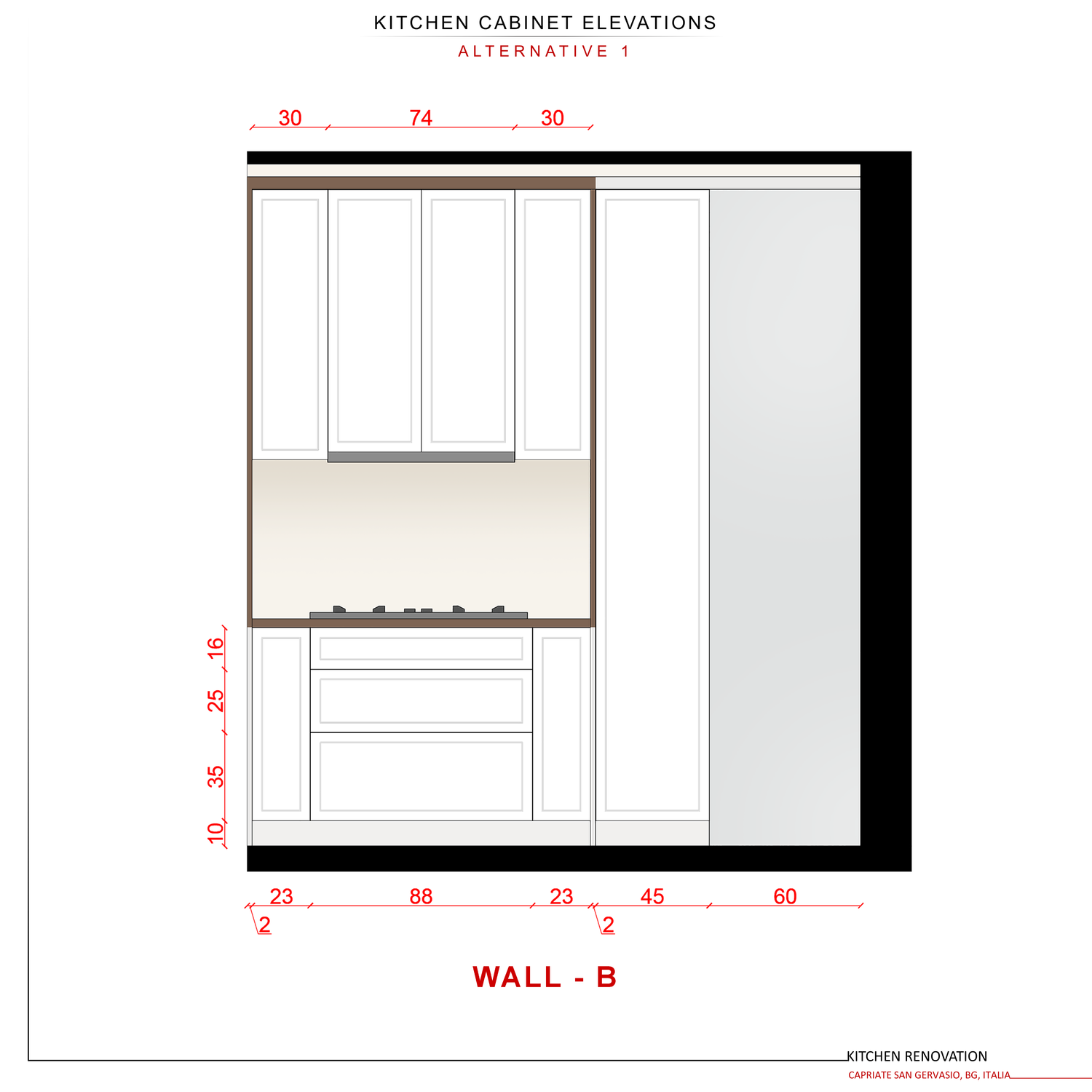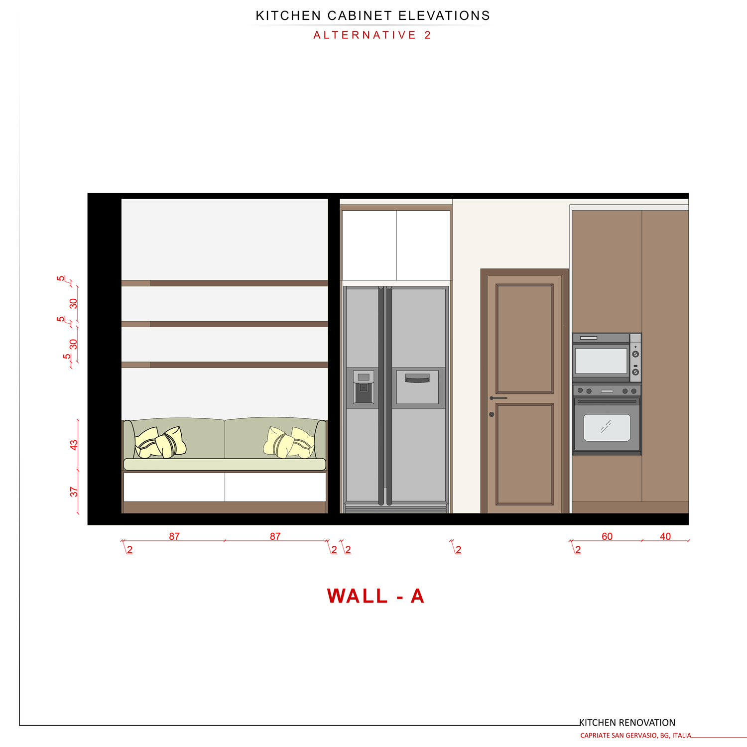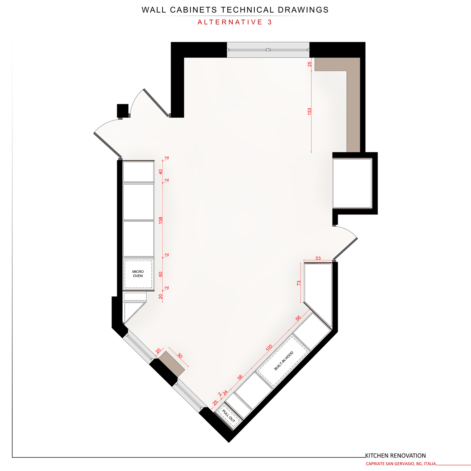 Considerando i vincoli esistenti, come la posizione fissa del frigorifero e il mantenimento del pavimento in parquet, e con l'obiettivo di risolvere sfide come lo spazio di stoccaggio insufficiente e l'accesso inadeguato ai pensili, abbiamo preparato tre concetti di design distinti ma completamente realizzabili. Ognuna di queste proposte offre un approccio diverso per creare uno spazio ideale in cui: