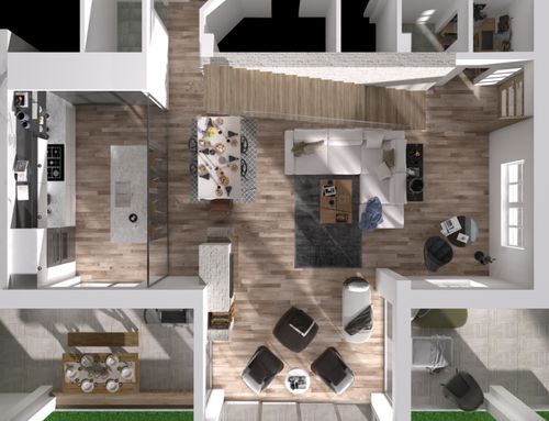 Always at the current state, ladder appears directly in the living room. It would be useful to create a disengagement also here so that the rooms that are created above are not affected by the noises coming from the lower floor.