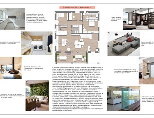 1. PLANIMETRIA PIANO TERRA CON SUGGERIMENTI (GROUND FLOOR PLAN WITH SUGGESTIONS): this annex shows the current status and I have included some photos and suggestions of what I would like to do.