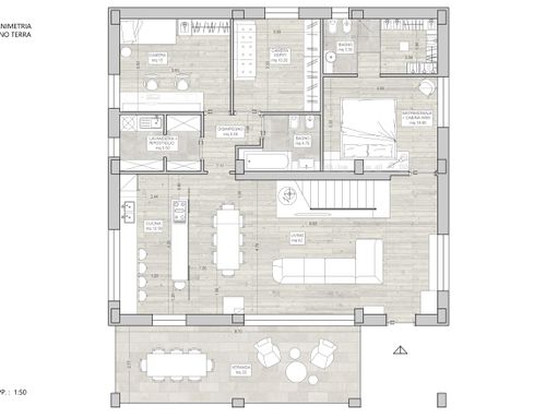 Como en el primer piso, también en este plano quiero poner piso de parquet que descansaría sobre un gres (en la parte NORTE en cambio, no hay ningún tipo de piso, pero todavía está en estado rústico solo con una fina capa de cemento).