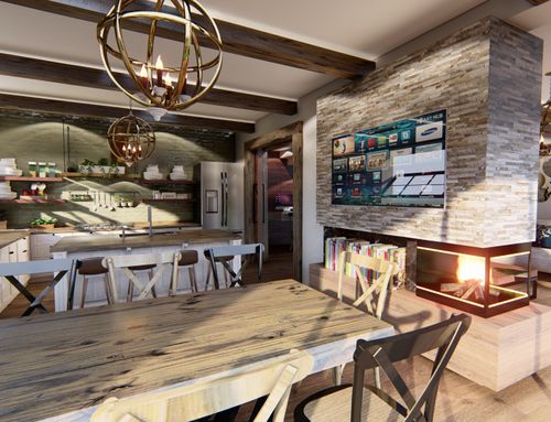 Además, me gustaría colocar una chimenea térmica que sea "disfrutable" desde la cocina y desde la sala de estar.