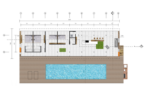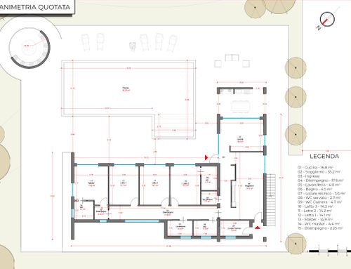 una doccia, uno spazio esterno per una cucina con barbecue e un locale lavanderia dotato di lavatrice, gas e boiler con accesso dall'esterno. Sarebbe utile avere un piccolo orto con accesso dalla cucina. La superficie massima consentita è di 165 170 mq. La zona blue nella foto N9 è più alta rispetto alla rossa.si la villa vorremmo fosse collocata con lo sguardo a nord est, la piscina davanti in modo da avere sole per tutta la giornata.Esattamente la collocazione ideale è quella che si colloca sulla diagonale che unisce il vertice NW con il verice SE, praticamente rivolta in modo di godere di alba e tramonto dalla veranda-solarium-piscina...aggiungo una foto