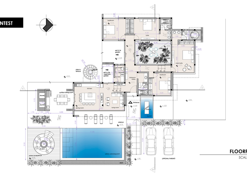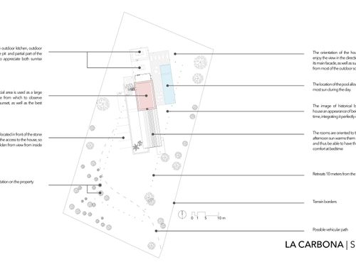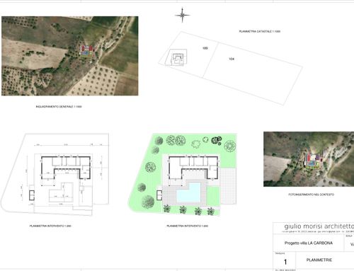 I need a mediterranean style villa, one floor, perfectly insert in the natural contest with the possibility of seeing the neighboring nature also from inside the house: I want large windows, 4 bedrooms and 3 bathrooms (2 of them en suite), kitchen and living room in the same large space, solarium with a swimming pool (60mq) and a shower, an outdoor space for a kitchen with a barbecue. The whole surface must be at most of 165mq. I would also like a little room with an outdoor access which has to be used as a laundry with a washing machine, gas and boiler. It's our need to have a vegetable garden outside of the kitchen. The villa we would like to be located with the gaze to the north east, the swimming pool in front so as to have sun for the whole day. The blue zone in the picture N9 is higher than the red.Please ask for more details.Vigneto Bimmisca Exactly the ideal location is the one on the diagonal that join the NWvertex with the SE vertex, practically aimed at enjoying sunrise and sunset from the veranda-solarium-sunset...like the photo.