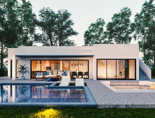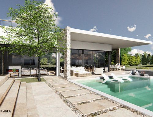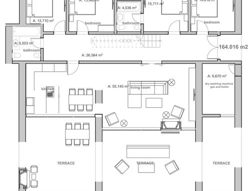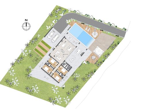 Villa mediterranea, un piano, perfettamente inserita nel contesto naturale circostante con la possibilitĂ di godere della natura che la circonda anche dall'interno della casa: ampie vetrate, 4 camere e 3 bagni, di cui 2 en suite, cucina soggiorno, solarium con piscina (60mq)