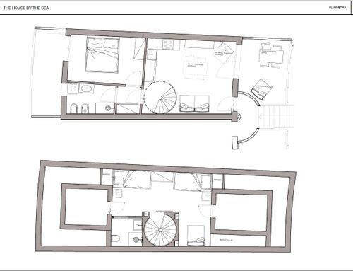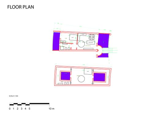 Also on the upper floor I would like to create a small bathroom with shower, perhaps using one of the 4 walled compartments, on the sides of the openings leading to the balconies, which continue into the attic and which can be seen in the plan. the remaining 3 rooms I would like to use them as closets.