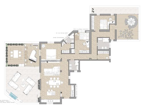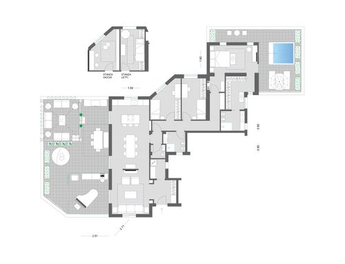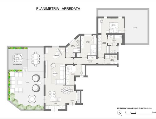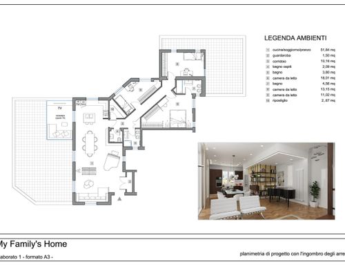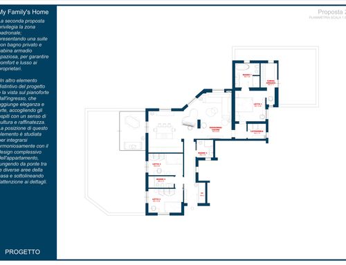 Hi, I'm Elio and I have decided to renovate the property where I live with my wife and my two children aged 2 and 4. The property is located in Rome and covers a surface area of approximately 180 m2 including a veranda. The area where today we find the living area and the veranda with the bedrooms is the area facing south, certainly worth enhancing as it is the area that also has a view of the city. In the new design layout I am open to any proposal, however trying to include three bedrooms, the master bedroom with en-suite bathroom and a walk-in closet for my wife and me; a shared bathroom for the other two rooms for the two sons therefore a new bedroom must be inserted so that both boys can have their own room.; a guest bathroom, a living area with a grand piano; ; kitchen possibly also open space. The property today has parquet that I would like to preserve as much as possible. As for the stylistic choice, I don't like industrial or shabby, I prefer proposals that are close to a classic/minimal style. Thank you all. Good work.