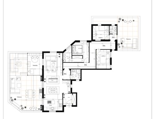 Hola a todos, soy Elio y he decidido reformar la propiedad donde vivo con mi mujer y mis dos hijos de 2 y 4 años. La propiedad está ubicada en Roma y tiene una superficie de aproximadamente 180 m2, incluida una terraza. La zona donde hoy se encuentra la sala de estar y la terraza con los dormitorios es la zona orientada al sur, sin duda digna de realzar ya que es la zona que también tiene vista a la ciudad. En el nuevo diseño estoy abierto a cualquier propuesta, pero intentando incluir tres dormitorios, el dormitorio principal con baño en suite y vestidor para mi esposa y para mí; un baño compartido para las otras dos habitaciones para los dos hijos, por lo tanto se debe insertar un nuevo dormitorio para que ambos niños puedan tener su propia habitación.; un baño de visitas, una sala de estar con piano de cola; ; Cocina posiblemente también espacio abierto. La propiedad hoy tiene parquet que me gustaría conservar lo máximo posible. En cuanto a la elección estilística, no me gusta lo industrial o shabby, prefiero propuestas que se acerquen a un estilo clásico/minimal. Gracias a todos. Buen trabajo