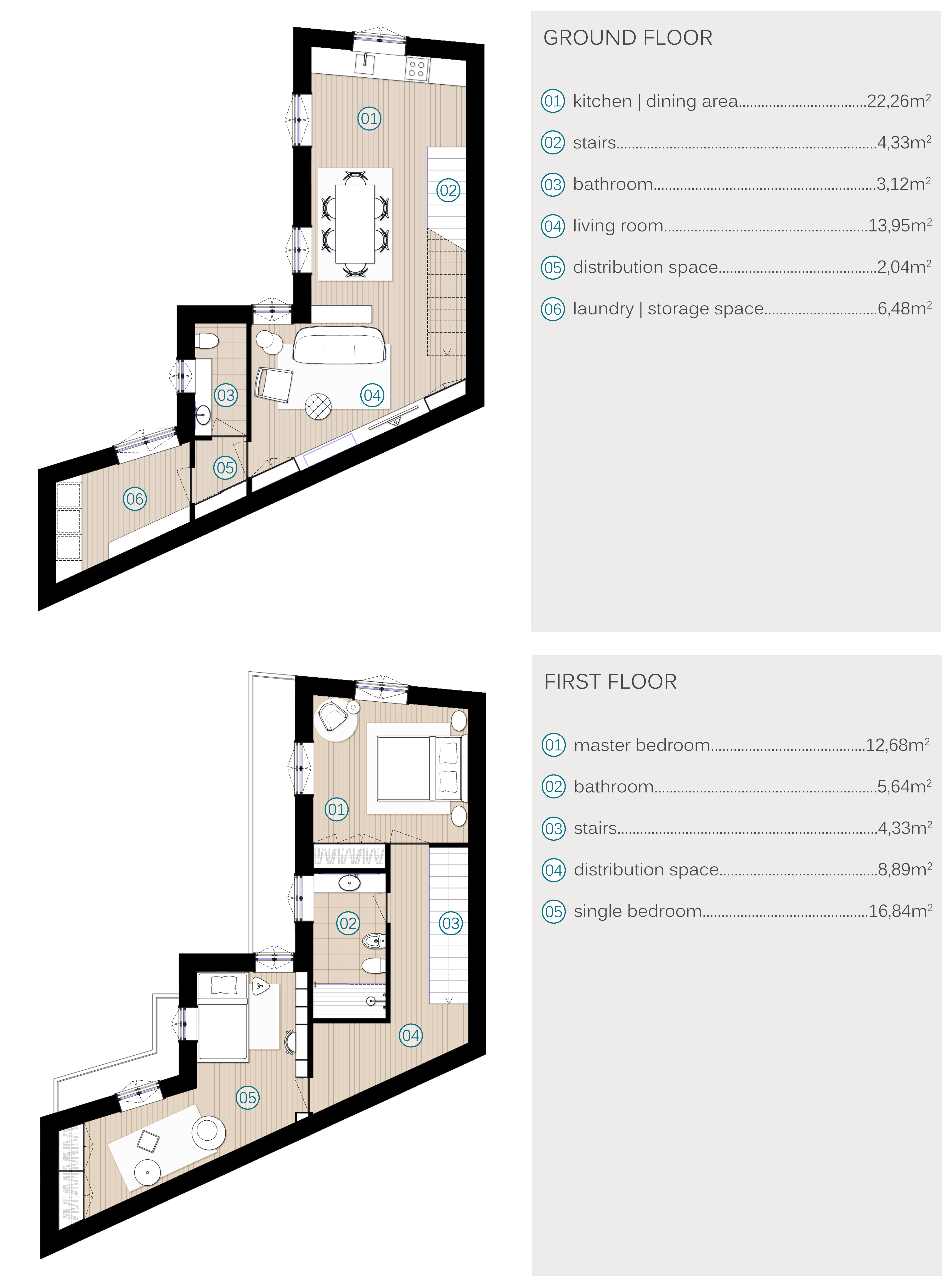 We would like to get 2 bedrooms and a big bathroom (washbasin cabinet, wc, bidet, shower).