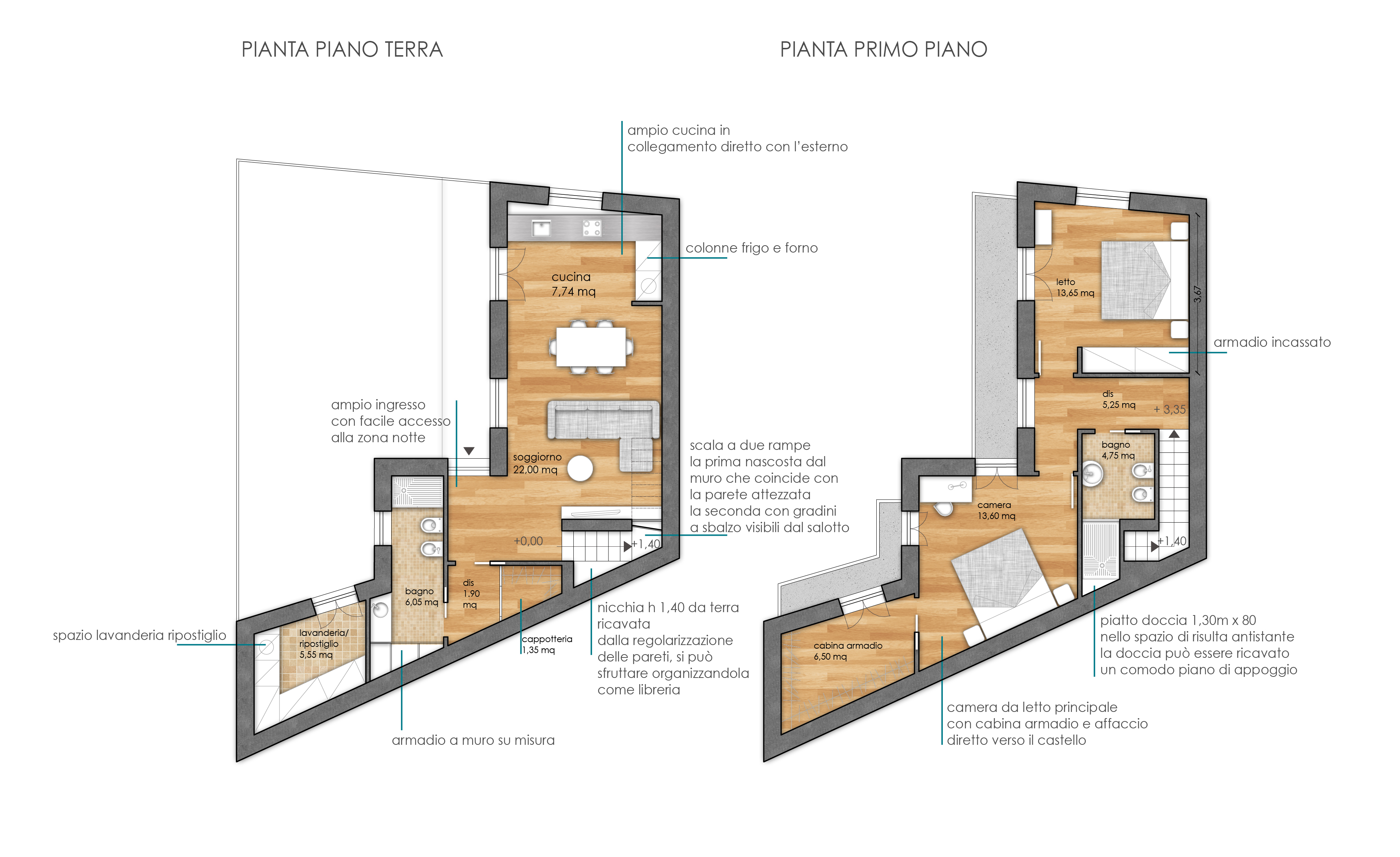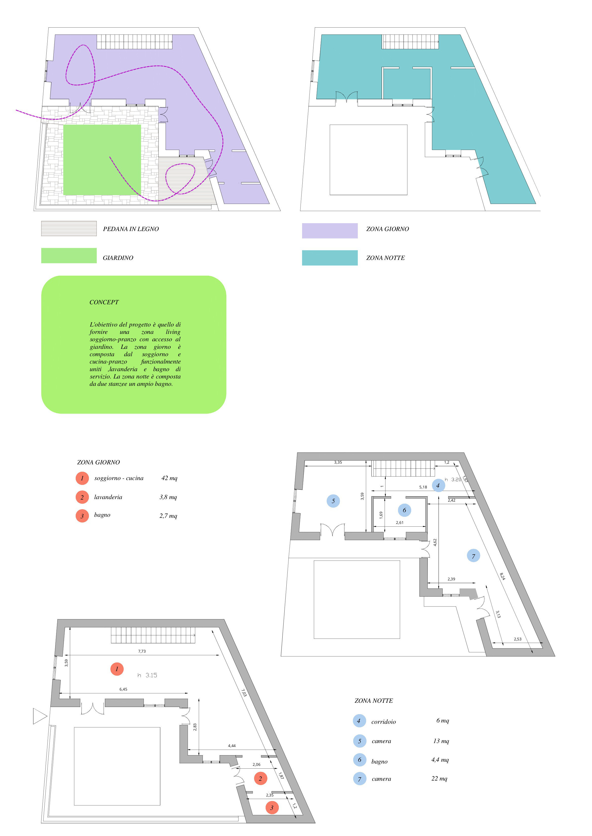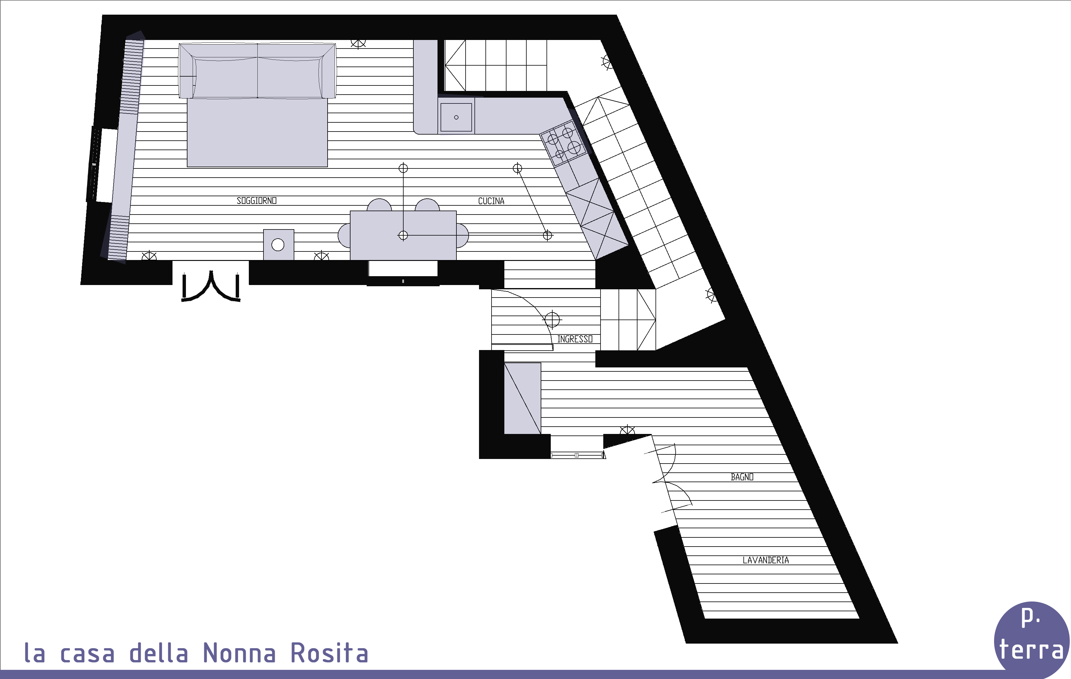 Vorremmo ottenere una zona giorno unica con cucina, tavolo da pranzo e salotto (in cui vorremmo istallare una stufa a legna), un bagno di servizio ed un ripostiglio/lavanderia.