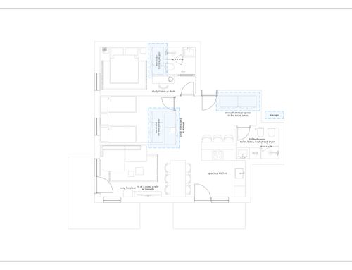 Siamo una famiglia di 4 persone con due figlie adolescenti e vorremmo una casa di montagna, calda ed accogliente, evitando soluzioni troppo "pesanti" o piene, con eccessivo legno (pareti/boiserie, finitura cucina, soffitto, etc.). Ci piace ricevere amici a mangiare e trascorrere pomeriggi assieme quindi ci farebbe piacere uno spazio "molto sociale", con un bel divano ad angolo, un tavolo da 6 posti (allungabile a 10), una zona cucina ampia e funzionale che sia rivolta al resto del soggiorno, magari con un bancone. Vorremmo una casa pratica e funzionale, con armadi e i giusti spazi per riporre tutto. Il soggiorno è molto luminoso con due finestre ed un terzo blocco fatto da finestra+portafinestra e ci piacerebbe che il divano fosse rivolto verso le finestre e al TV fosse ad una distanza corretta dal divano stesso. Nel soggiorno è possibile localizzare una stufa (elemento essenziale per noi) in tre diverse posizioni che sono indicate in una tavola. Ci dovranno essere due camere dal letto, una matrimoniale ed una doppia con due letti singoli (non letto a castello), entrambe con armadio. I due bagni ciechi non sono grandi e andrebbero studiati bene, entrambi con doccia e armadietto, ed almeno uno con bidet. Da capire dove mettere la lavatrice. La zona ingresso è molto/troppo ampia ed andrebbe sfruttata al meglio, anche prevedendo una zona armadi. Purtroppo c'è una colonna portante tra ingresso e soggiorno. Oggi una delle camere ha una parete scorrevole che andrà , ovviamente, resa una parete standard. Tutti gli arredi delle foto, tranne forse il divano, sono da sostituire, e con la ristrutturazione le pareti potranno essere spostate, i bagni rifatti ed il pavimento sostituto. Gli infissi sono nuovi. Tra i file caricati, ci sono alcune mie ipotesi progettuali (sono un mancato architetto ;-)