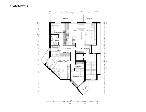 Camera n. 3: sarà la nostra camera da letto matrimoniale. Vorremmo includere un bagno privato con wc, bidet, lavabo compatto, mobile per dispense e una doccia. L'armadio sarà una cabina armadio Presotto, attualmente in nostro possesso, con ante in vetro opaco (84 cm L x 275 cm H cadauna) e una struttura interna che misura 3,55 m L x 0,5 m P. se possibile creare l'installazione dietro al letto.