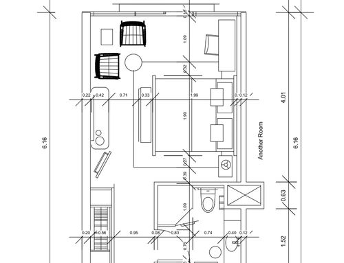 • There must be a mini fridge (and its proper ventilation must be taken into consideration)