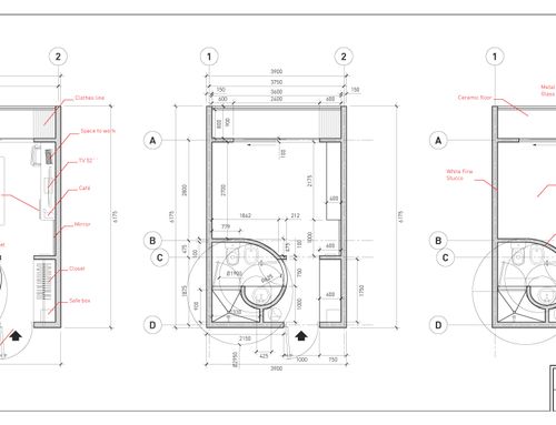 • It needs to have panels that electrical wires and plumbing etc. are hidden behind. Also, the bathrooms must have its pipes, drains, tub and toilet positioned so that they do not create noise in the room or the adjacent rooms
