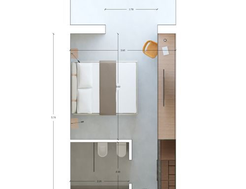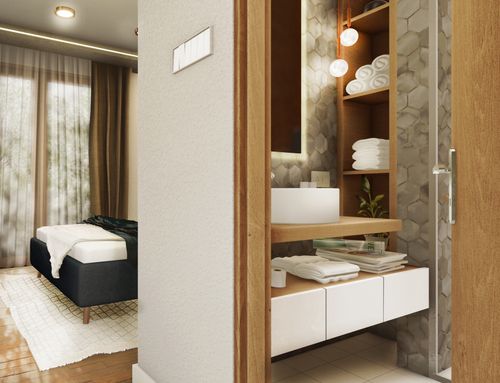 • Los suelos de baño y dormitorio también deben ser resistentes, aptos para su uso (no resbaladizos en el baño) y posiblemente del mismo material, tipo y color para dar una mayor sensación de espacio entre dormitorio y baño.