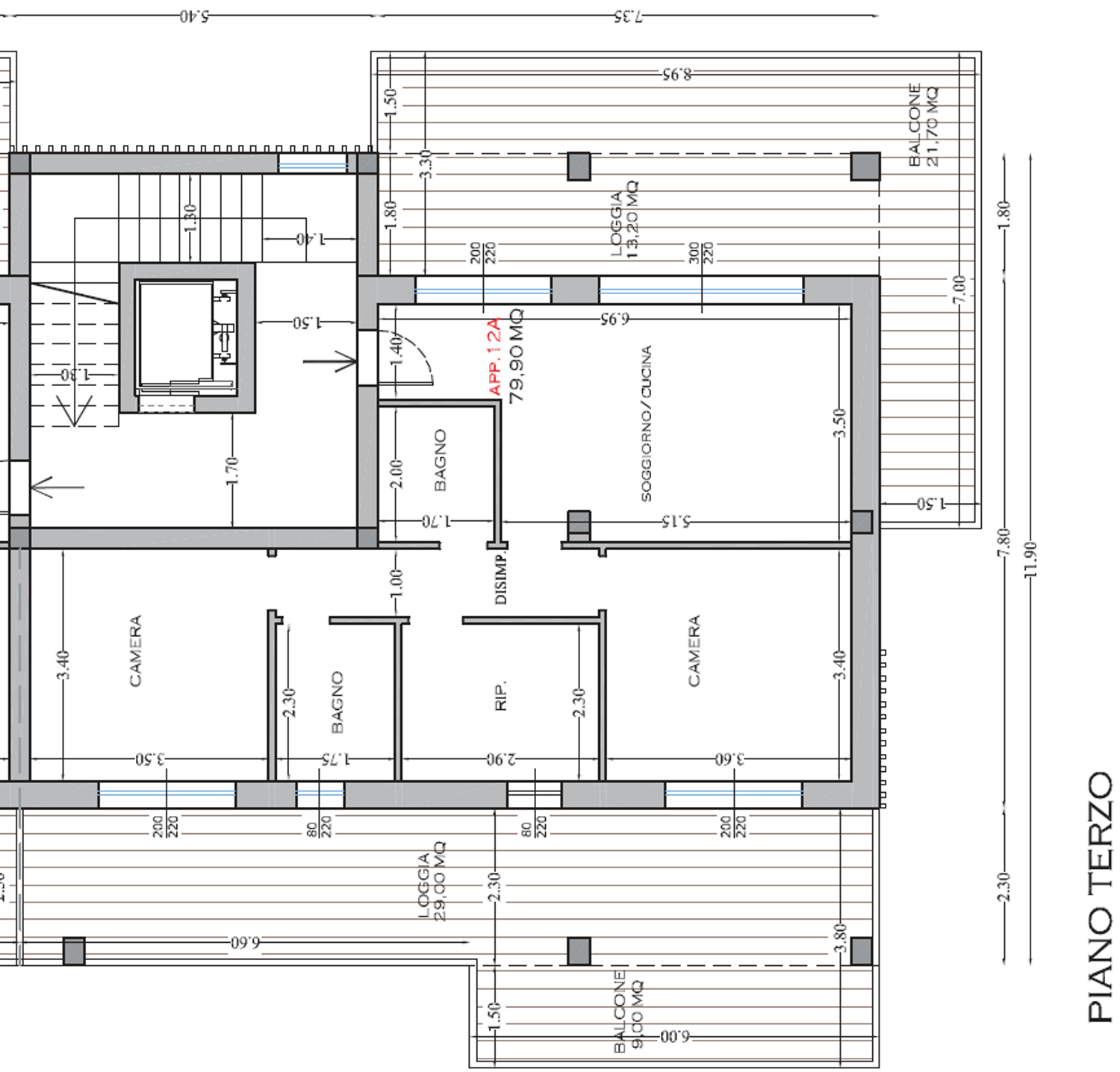 L'appartamento sarà al terzo piano di una palazzina di 4 piani. Dalla zona giorno sarà possibile vedere il mare. Il progetto prevede la possibilità di chiudere con infissi una delle due logge presenti nella planimetria (o il lato est del soggiorno/cucina o il lato ovest della zona notte). Alleghiamo la planimetria e il render del progetto.