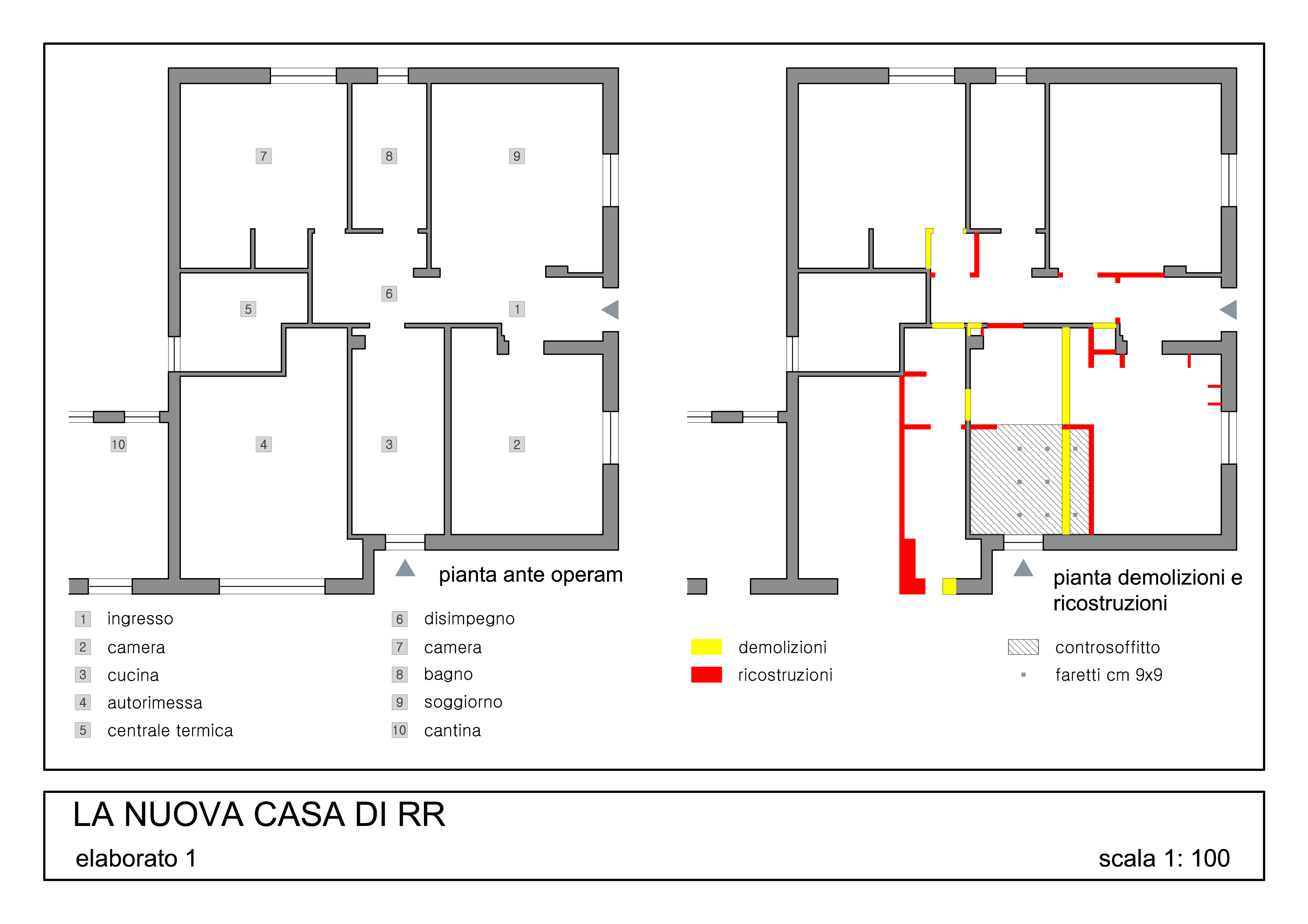 Lascio al progettista la scelta di creare un unico ambiente cucina zona pranzo salotto oppure prevedere elementi di separazione, anche parziali. In qualunque soluzione dovrĂ essere prevista la possibilitĂ di isolare la zona salotto dalla zona pranzo-cucina tramite vetrate-porte scorrevoli ecc. Preciso che la ristrutturazione dovrĂ prevedere la creazione di una nuova finestra sfruttando l'attuale apertura dell'autorimessa.