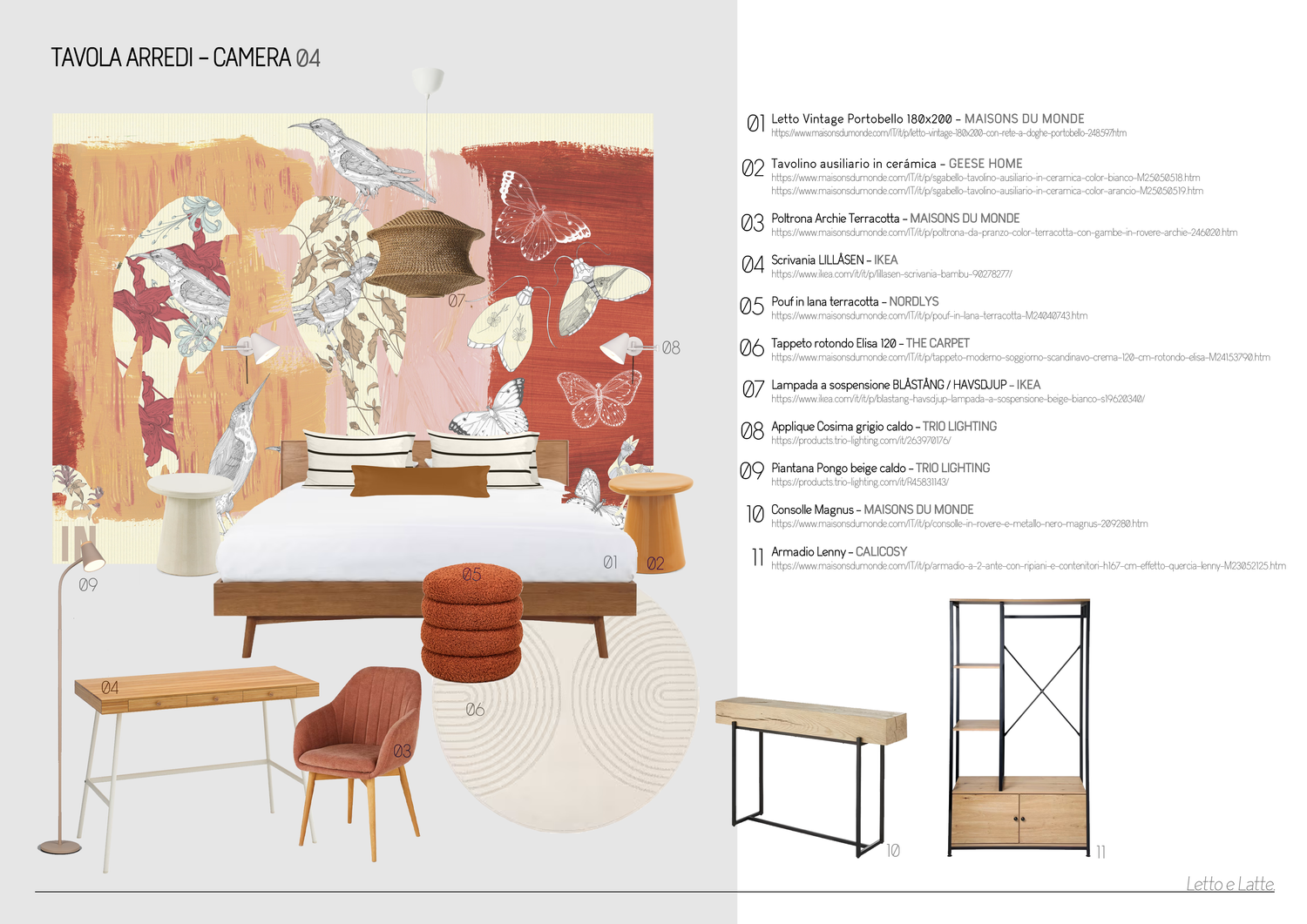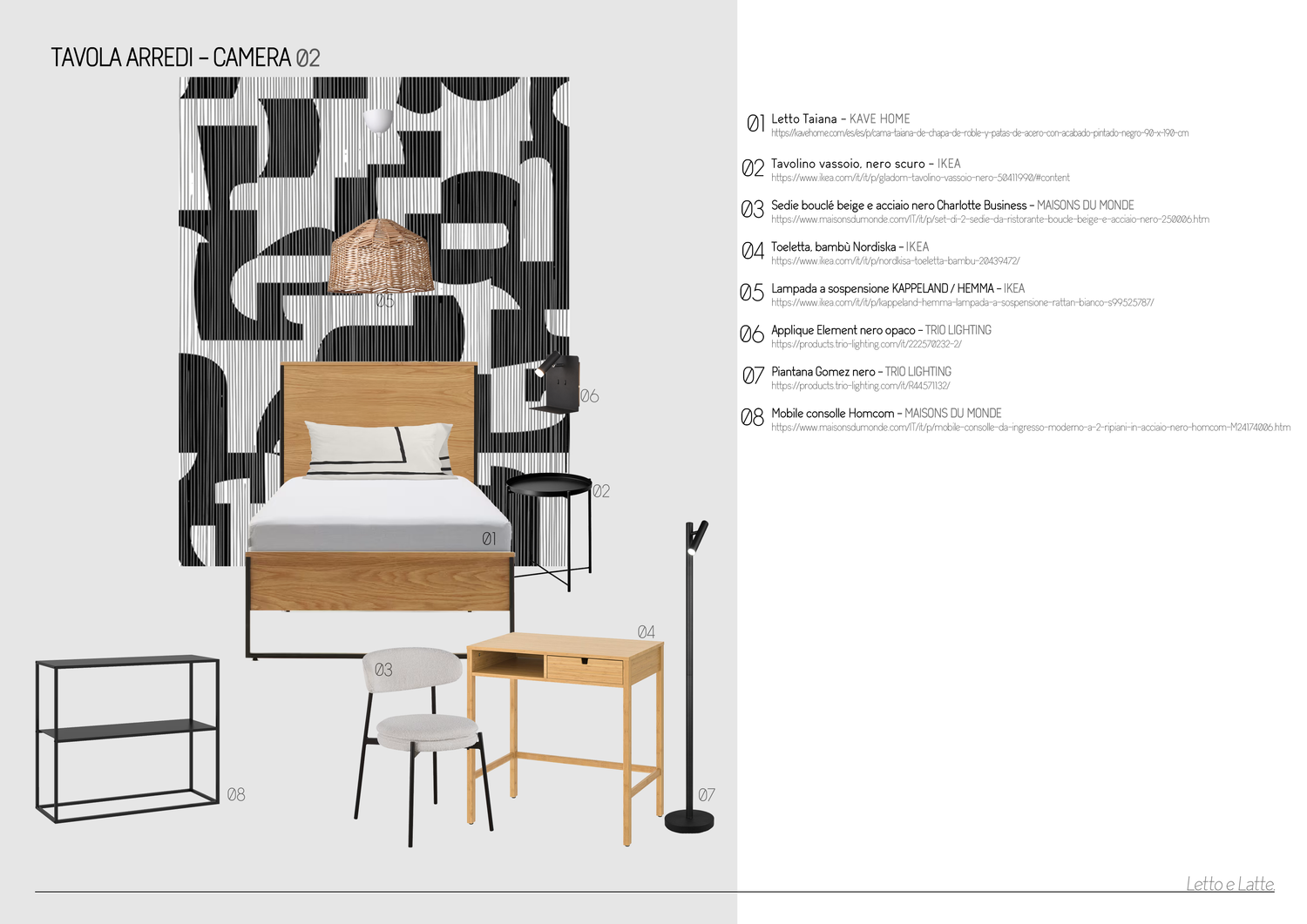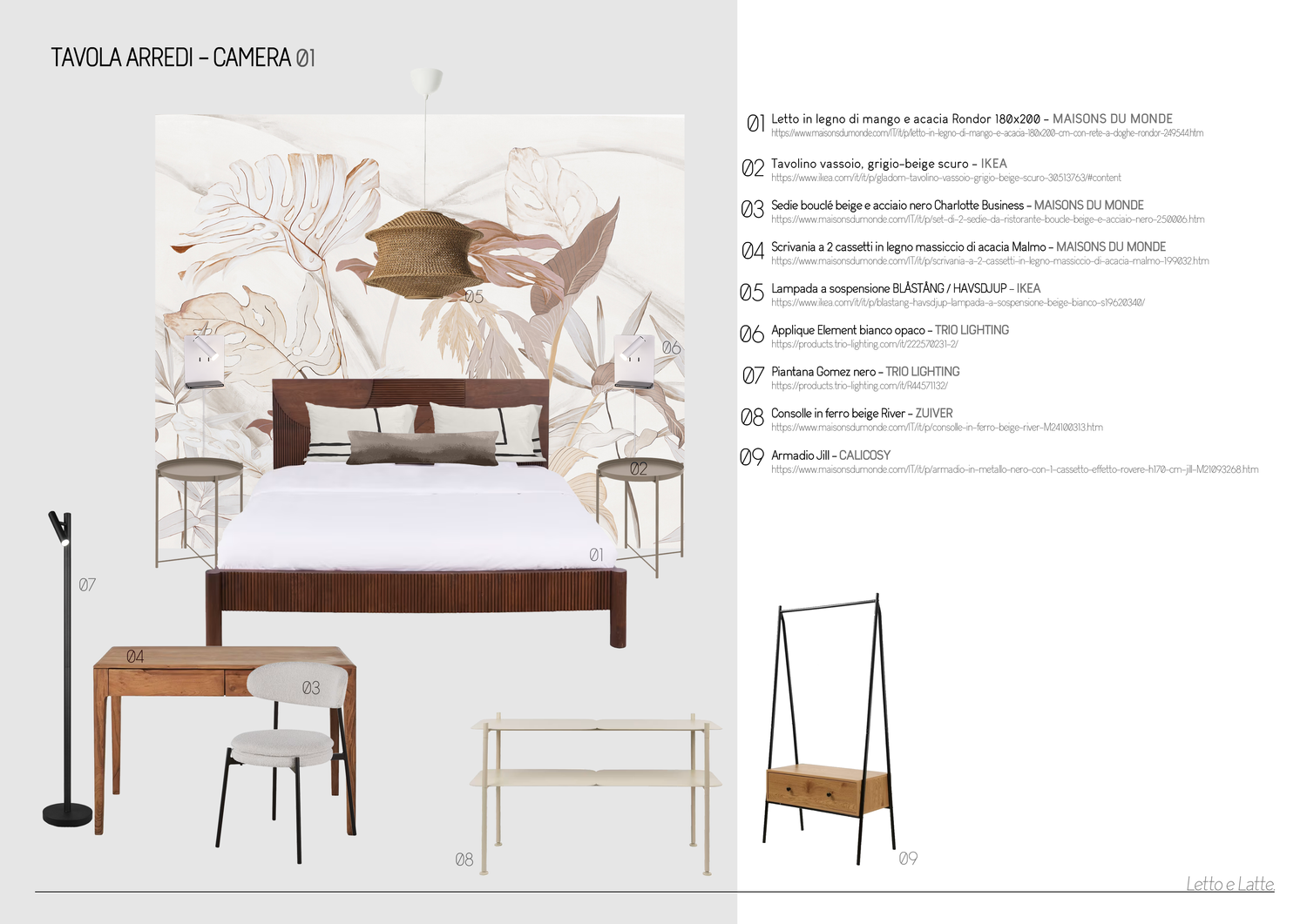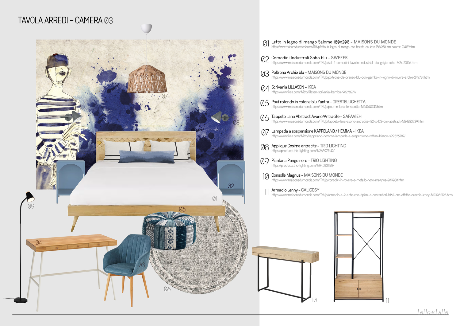 Gentile Cliente, ho basato la mia proposta sulla disposizione condivisa nella sezione "risorse", con alcune varianti, principalmente nella camera da letto 1. In uno stile moderno e informale, ogni camera da letto è stata progettata attorno a una carta da parati distintiva che definisce la palette di colori e l'atmosfera. Allo stesso modo, i bagni condividono tutti lo stesso design, ma con diverse combinazioni di colori per abbinarsi alle camere da letto. Ho cercato di mantenere gli spazi luminosi e ariosi, evitando mobili ingombranti per creare un'atmosfera giovane e rilassata. La "Sala Pranzo" offre diverse possibilità di utilizzo: ci si può rilassare sul divano, fare una colazione veloce al bar o sedersi più comodamente al tavolo. Spero che il progetto le piaccia. Grazie mille.