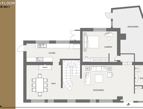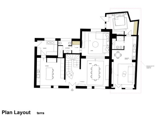 I have to renovate this villa, touching the structures and spaces as little as possible, with the aim of making it suitable for the life of a modern family. I have to be able to save as much as possible on renovation costs, I want to maintain the peculiar characteristics of the Villa which has wooden coffered ceilings, a large wooden staircase and a wrought iron spiral staircase. It also has a very nice fireplace to renovate, we don't know how to arrange the internal spaces. we would like to give a new face in a modern character that combines the ancient and the modern giving an aura of luxury. It is definitely necessary to include a bathroom on the ground floor. The villa is subject to landscape constraints of the Curone valley park. It is not possible to distort it or change the colors too markedly. In the upper part of the park there is a small annex which could become an annex or an office. The villa and the park can be seen via google maps at the address: https://www.google.it/maps/place/Via+Pertevano,+8,+23874+Pertevano+LC/@45.7032418,9.3836162,413m/ data=!3m2!1e3!4b1!4m6!3m5!1s0x4786afa41a1b8e27:0x14bd5b6a59ef8c04!8m2!3d45.70324!4d9.3860516!16s%2Fg%2F11csl41p_6?entry=ttu