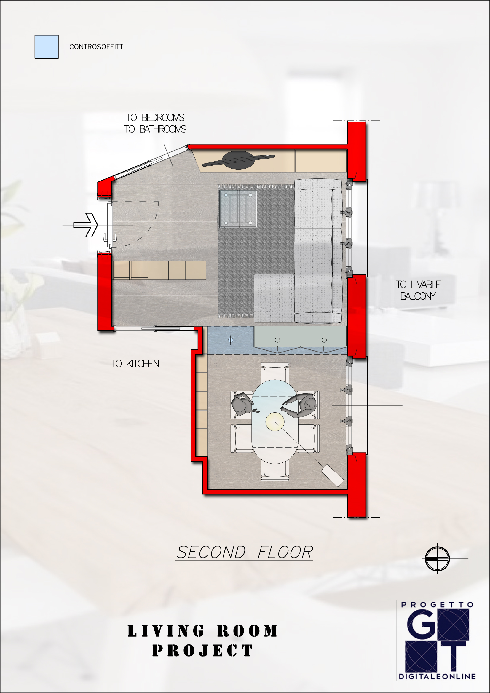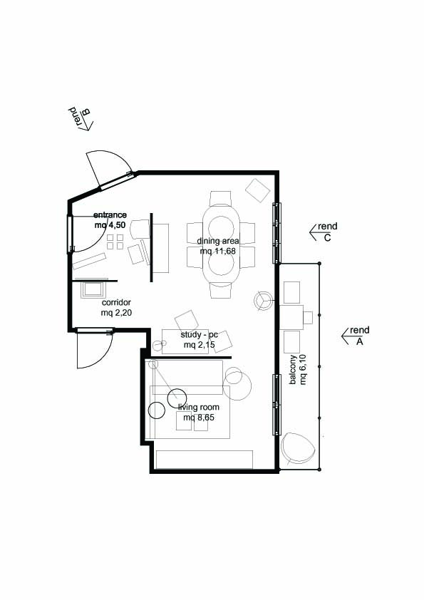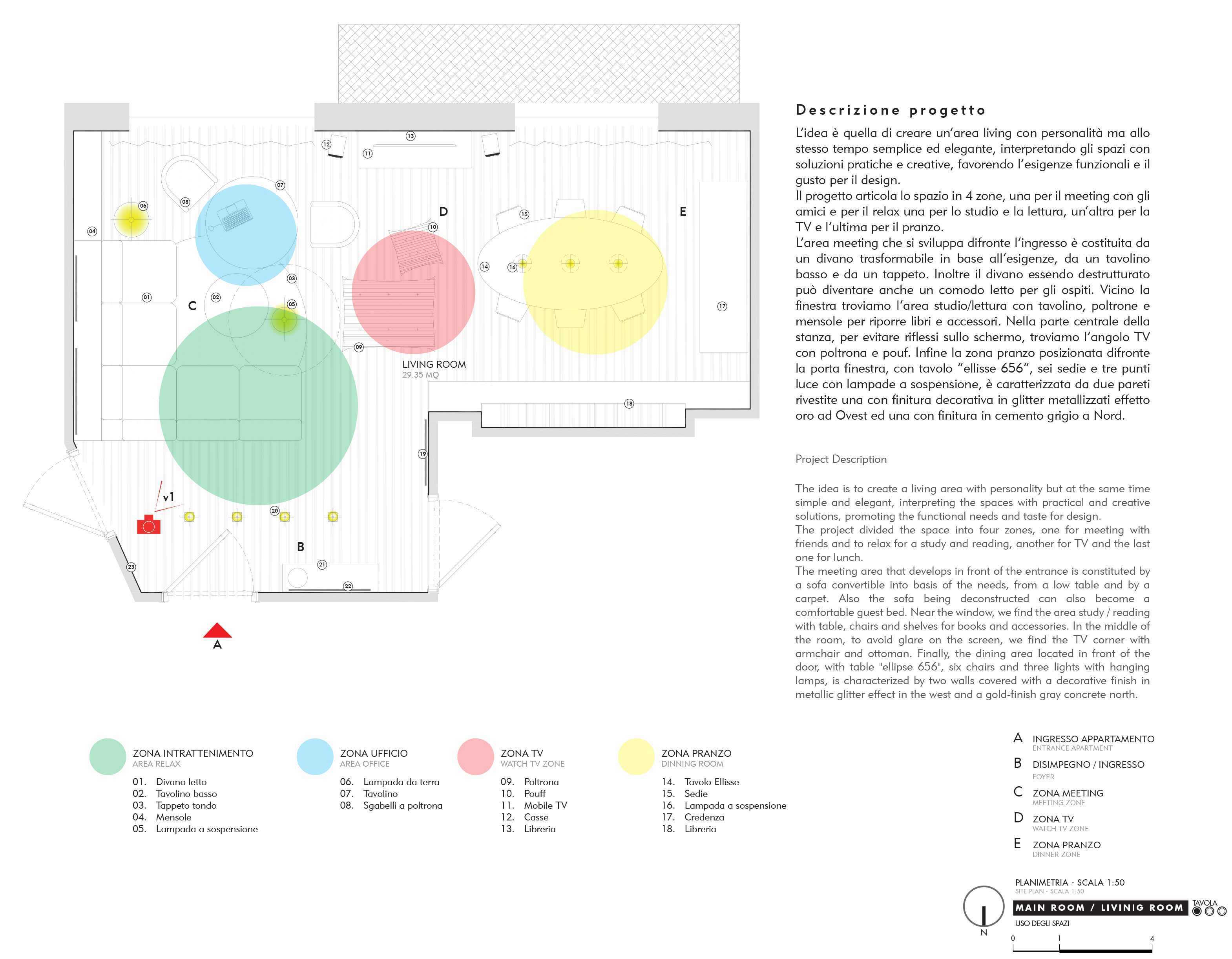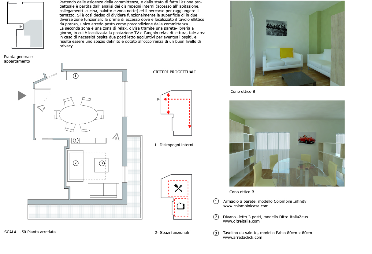 Some of our needs are: 1) Arrange a zone to watch TV and meet our friend for talks (sofas, etc...). - we are available to move the TV from the wall as the picture 2) A dinner zone to place our elliptical glass table (4 to 6 people). Consider that usually, we have a dinner in the kitchen's table. 3) Some furnitures. 4) Bookcases (we like read). 5) Some arrangement of the entering-zone: today is not defined. We don't know where place keys, coats, umbrellas, etc.... 6) Balcony is very nice: we would better exploit the outdoor access and use it more. 7) Smart solution to save space and recover the height wall for furnitures. 8) We need at least a sofa-bed to host our guest (mother in law). 9) Sometimes, I need home-working by a little desk (this is not mandatory, I can remove it).