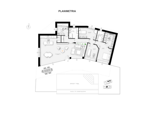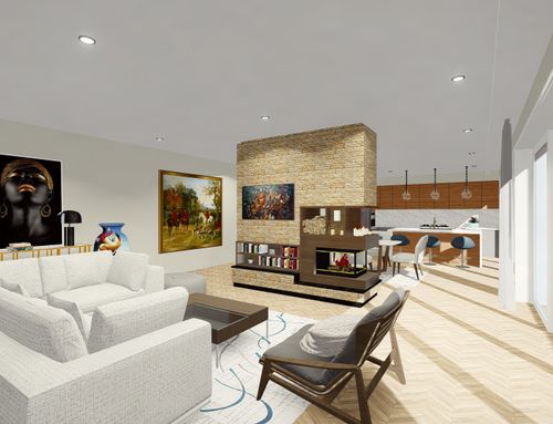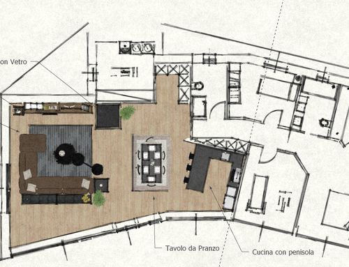 Buongiorno a tutti, devo realizzare una villa unifamiliare su unico livello con piscina (infinity pool). Ho una stanza di circa 70 mq che comprende soggiorno e cucina a vista con affaccio sulla piscina e sul giardino (orientati a sud). Mi piacerebbe avere un ambiente moderno con camino e pavimento in parquet. Essendo ancora in fase di progetto si accettano suggerimenti anche sulla disposizione delle finestre e/o porta d'ingresso principale. Importante: siete liberi di modificare a vostro piacimento la disposizione interna non solo dell’arredamento ma anche delle mura. ps il parquet indicato nel render è indicativo