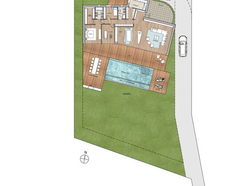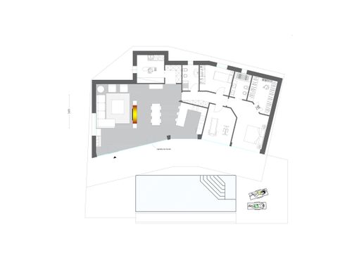 Hi everyone, I have to build a single-level single-family villa with swimming pool (infinity pool). I have a room of about 70 square meters which includes a living room and an open kitchen overlooking the pool and the garden (south orientation). I would like to have a modern environment with a fireplace and parquet floor. As the project is still in the planning stage, suggestions are also accepted on the arrangement of the windows and / or main entrance door. Important: you are free to change the interior layout not only of the furniture but also of the walls. ps the parquet indicated in the render is indicative.
