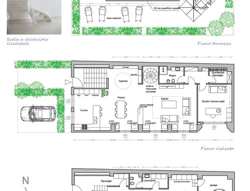 Nel caso del progetto della villa singola su tre livelli,pensare anche ad un ingresso esclusivo dalla corte,magari con un corridoio di piante verdi,sacrificando il posto auto che sta di fronte al portone di ingresso ed una zona SPA/RELAX all'interno della casa con piscina idromassaggio 4 posti e sauna per 4 persone.