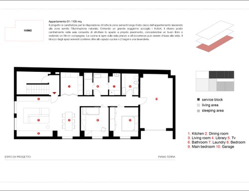 Il progetto deve essere per una villa residenziale unica su tre livelli o tre appartamenti (da realizzare su due livelli col seminterrato e 1piano attuali) ed un appartamento bomboniera al 2 piano di nuova realizzazione di circa 50 mq più terrazza.