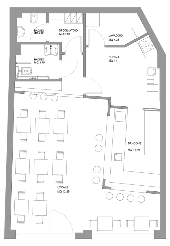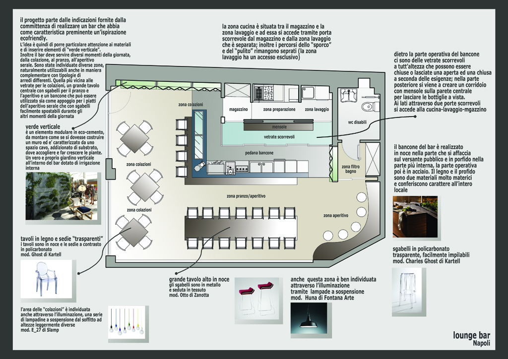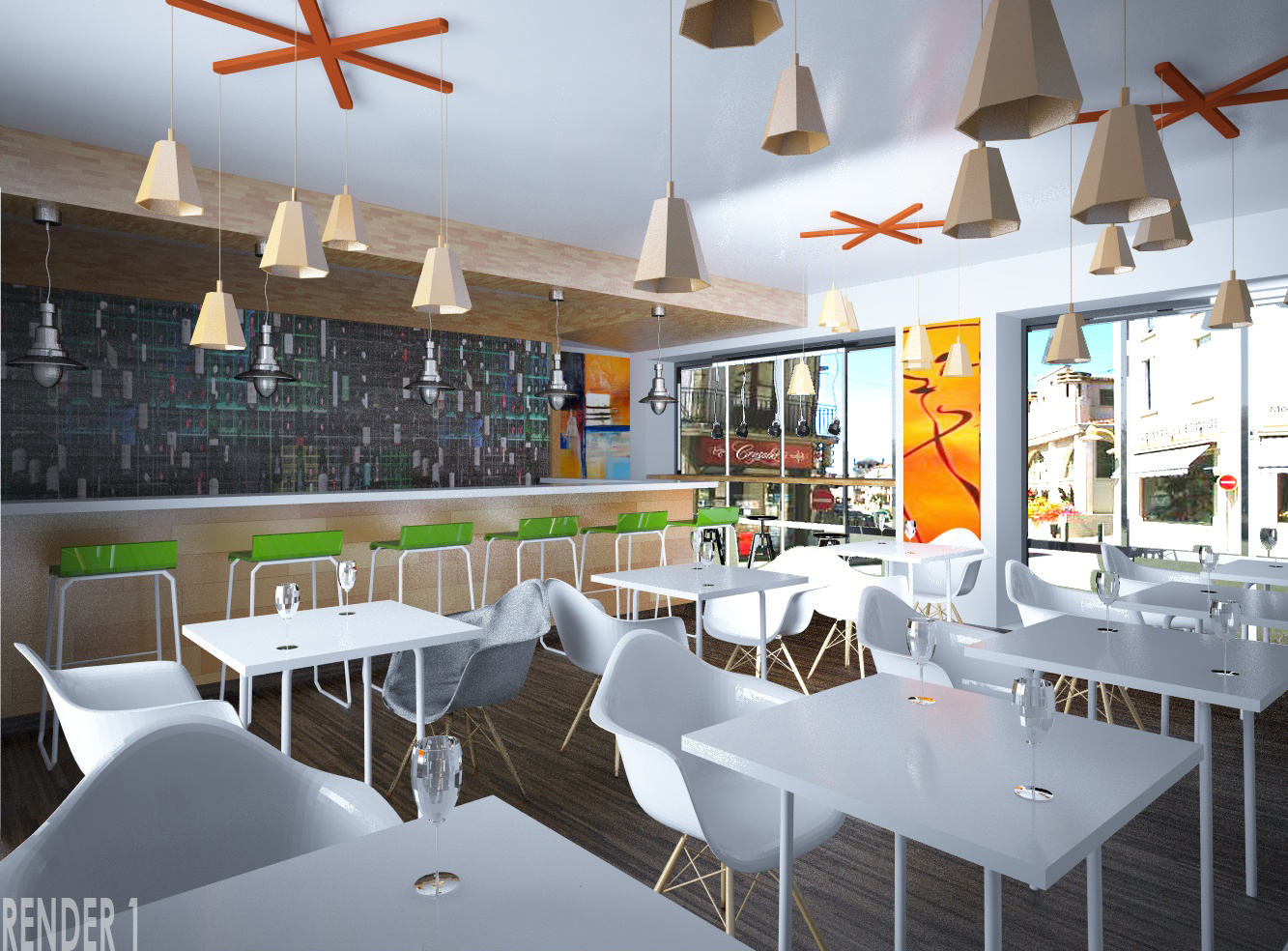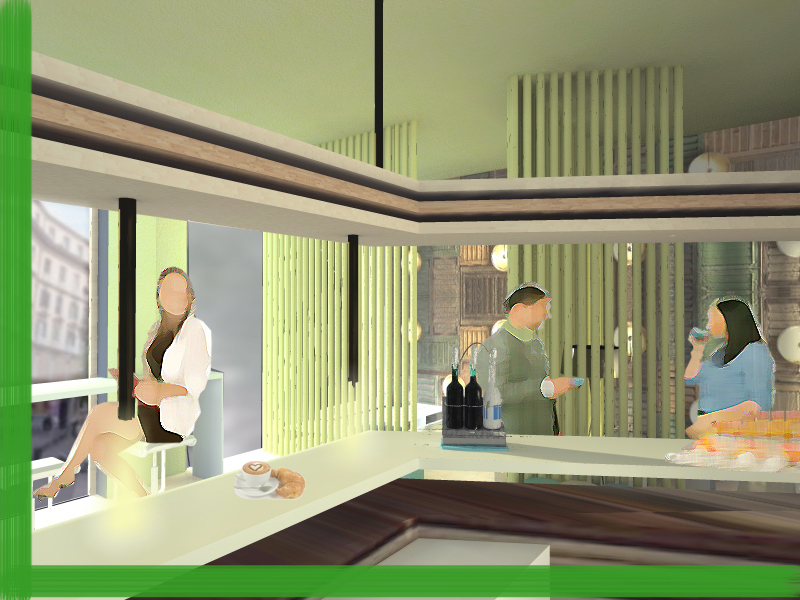The space is small and we need to fit many things inside. This bar have 3 functions, cafeteria for the morning lunch place for the lunch time and needs a complete kitchen and aperitif bar for the happy hour.