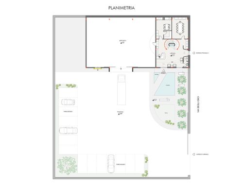 mentre per l'esterno parcheggi con verde e faretti (fate voi)